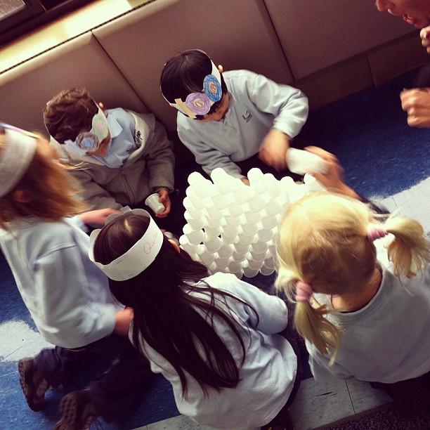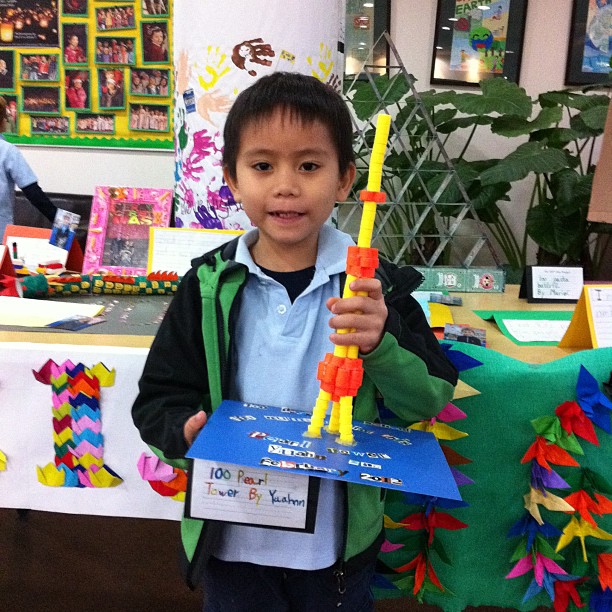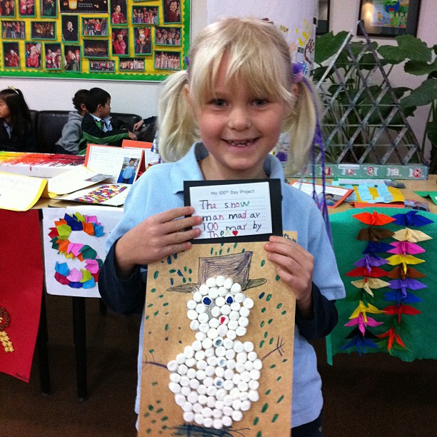 Our 1st Grade 100th Day celebration took place in the commons and we had wonderful parent volunteers assisting with each of the 10 stations. Students completed a variety of activities, such as creating pictures out of 100, decorating 100th Day crowns, sketching themselves at 100, answering If I had 100 … questions, building a tower with 100 cups, stamping to 100, measuring items with 100cm strings, skip counting to 100, filling in the missing numbers on a 100′s chart and more! The kids LOVED the celebration and are still talking about the fun they had on the 100th day of school!