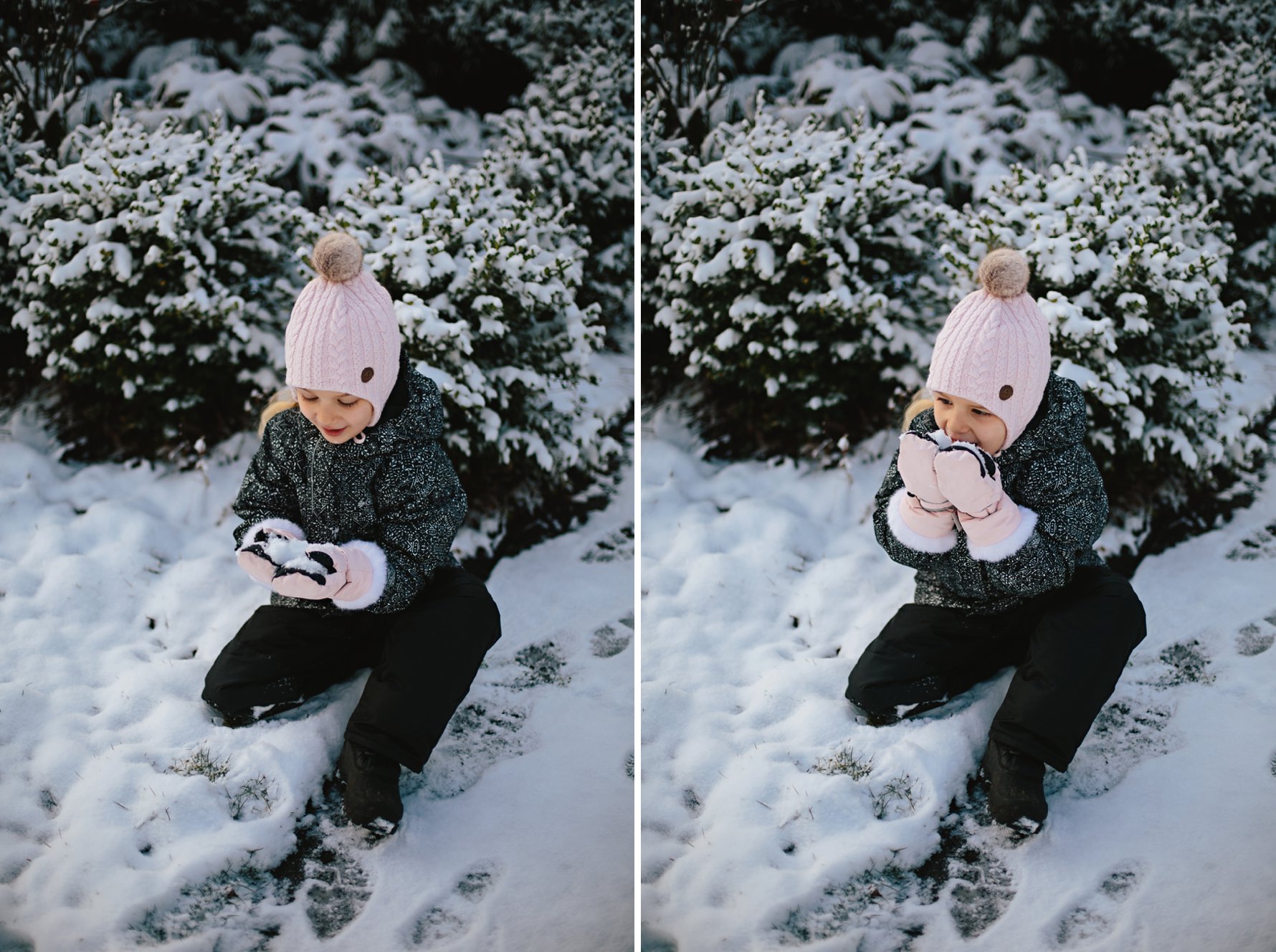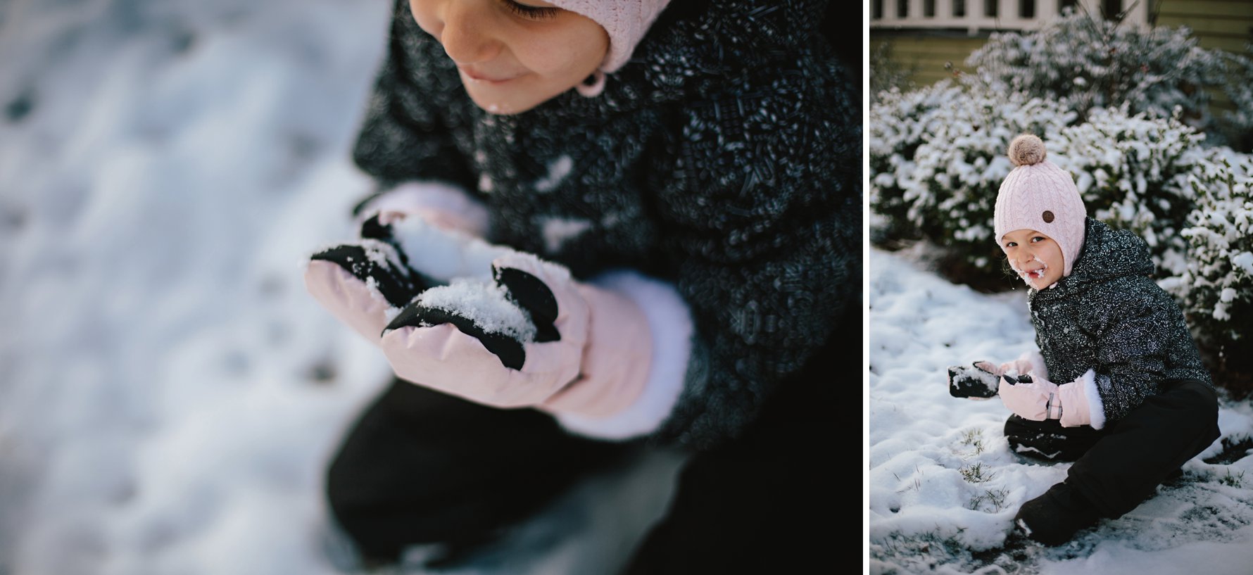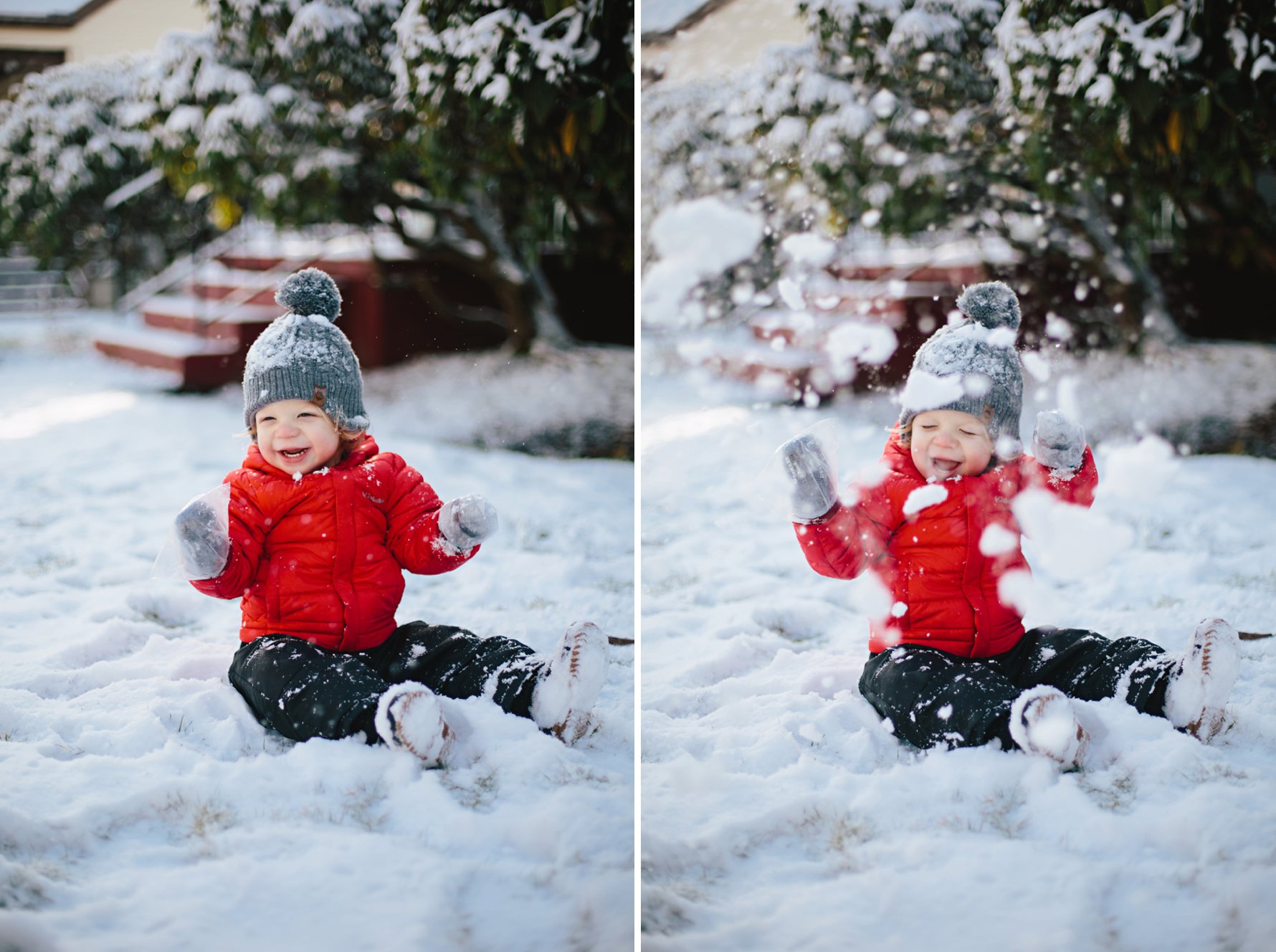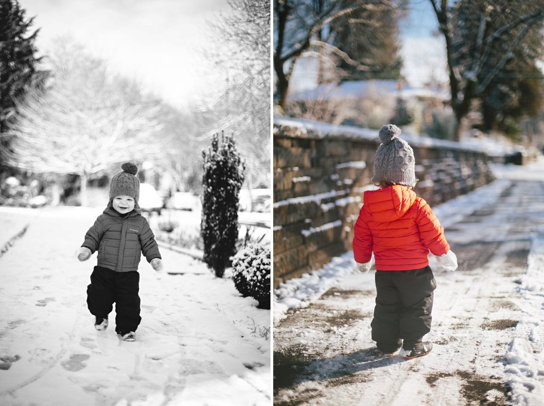 Isla eats all the snow.A couple of pairs of kid socks and some plastic baggies make for decent baby gloves! We’ll invest in some real gloves next year =)Cole did not take an interest in eating the snow .He did, however, think it was great fun when we “made it snow”.Until a blizzard hit. Oops. Sorry, buddy!
