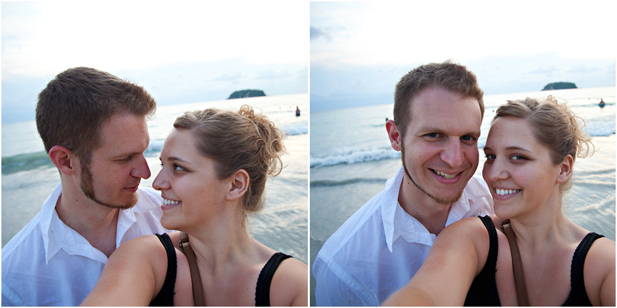 The sun was slipping below the horizon as we stepped onto the beach and sunk our feet into the silky sand. A gentle breeze was rising off of the waves and drifting over the land. Working our way down to the water’s edge we found ourselves walking in the opposite direction of most of the people around us. Salty haired tourists, in a sun-baked daze after hours of laying and playing in the heat, were gathering their towels and staggering off the beach in large numbers.Tossing our flip flops aside, we stepped into the warm surf, and inhaled deep breaths of the fresh salty air. Walking through the tide towards the restaurants we let the beauty of our surroundings soak in. Stopping every so often to gaze out at the waves, snap a few photos, steal a few kisses…