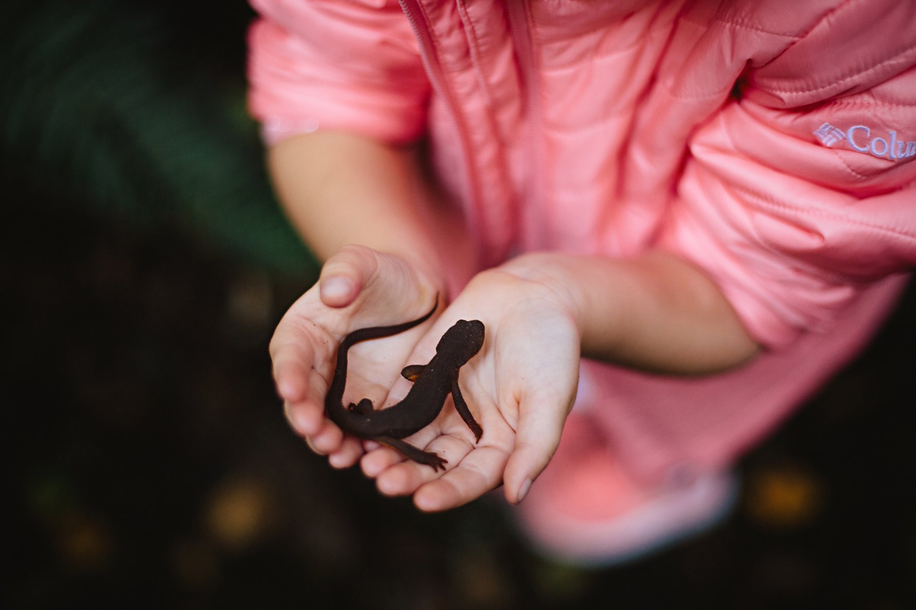 We found another newt friend as we finished our hike. This little one was attempting to make it across the road, so we helped it along in it’s journey… after giving it a little love, of course. Isla had a smile plastered across her blackberry-stained face the entire time!