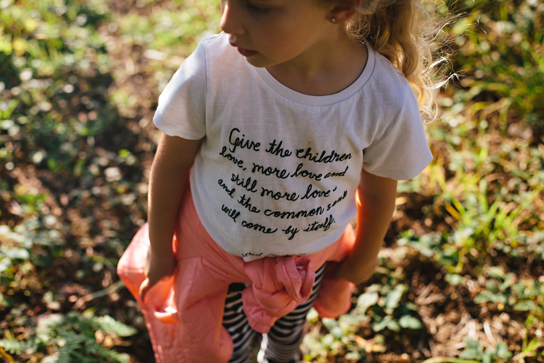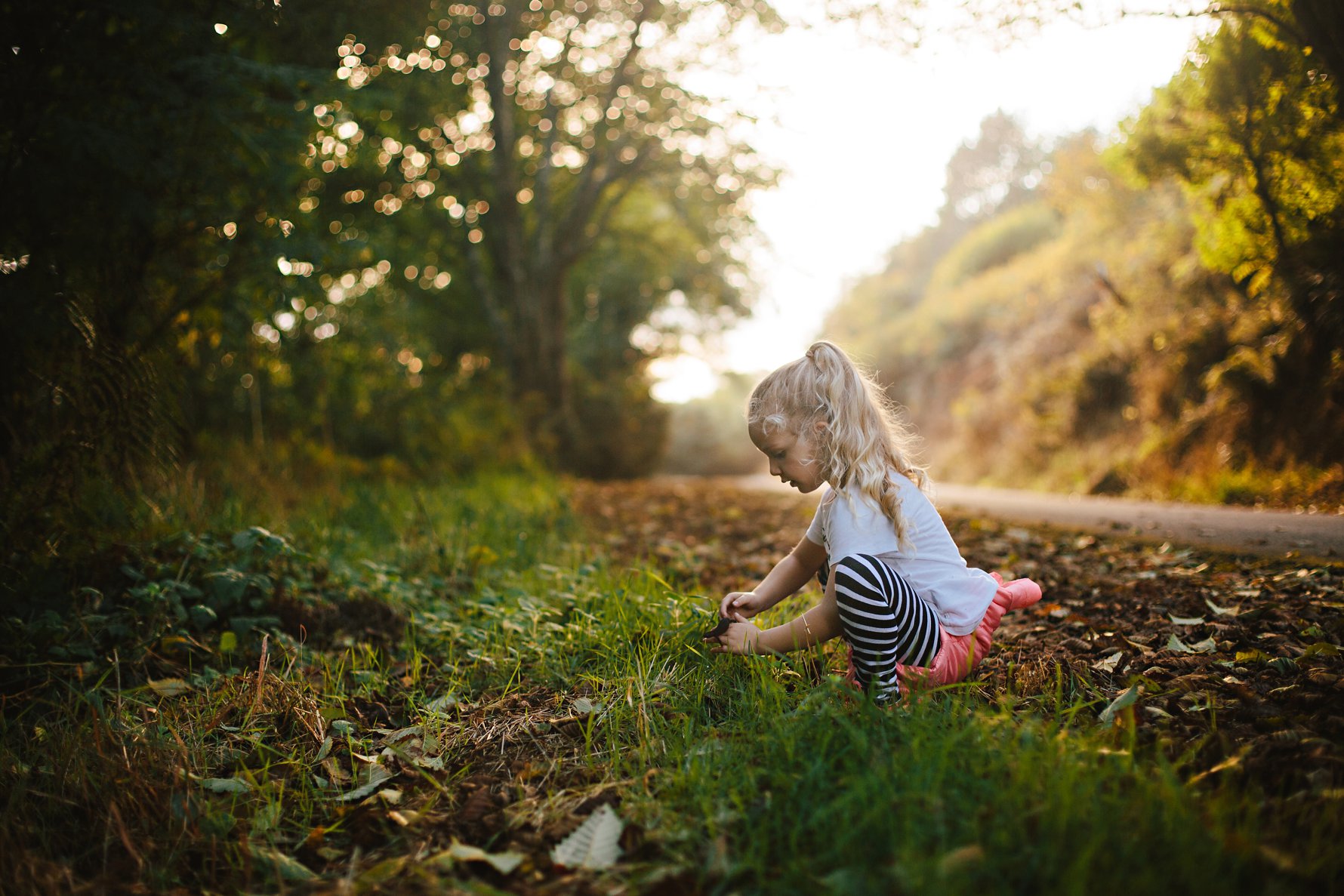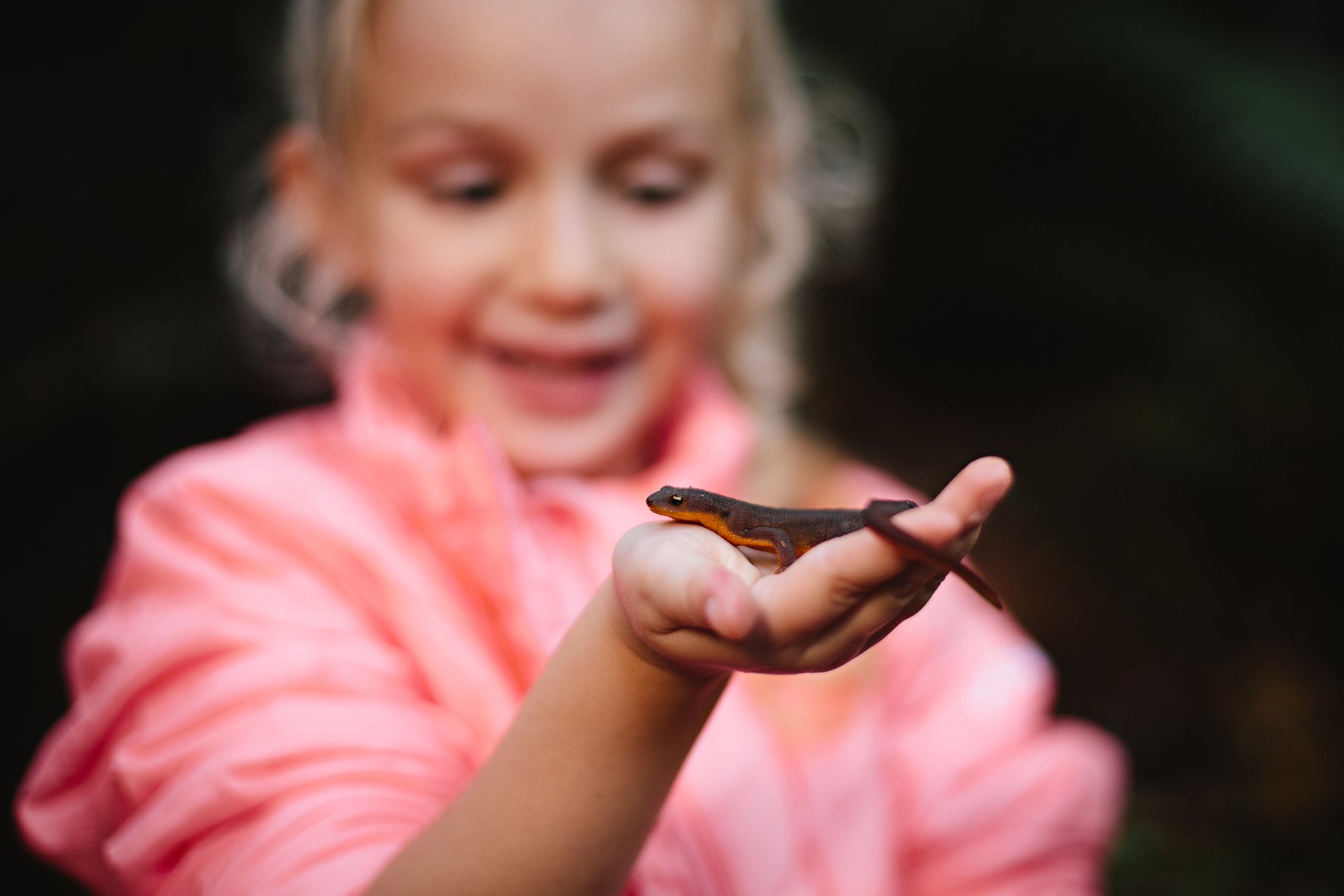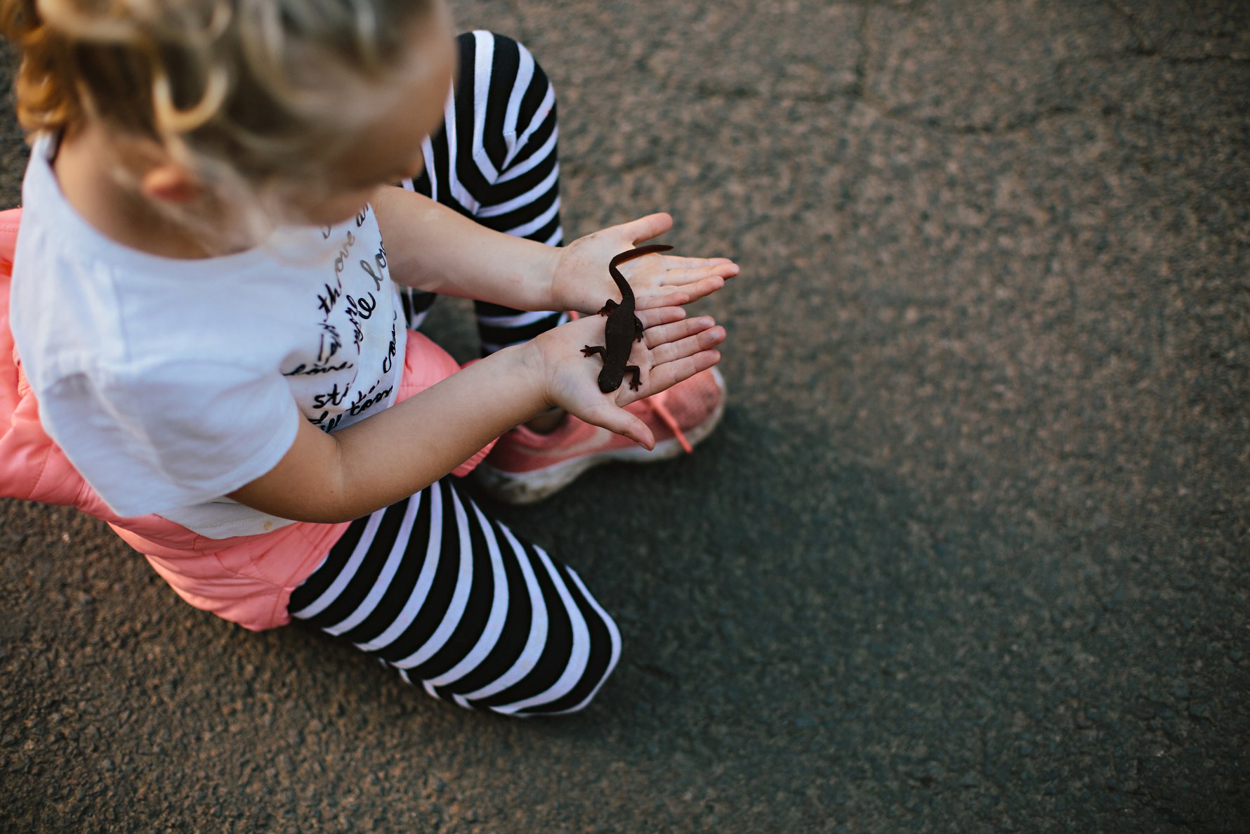 After picking Newty the newt off of the road, and giving it a few minutes of snuggles, Isla found a nice patch of damp grass and leaves, far from the danger of tires, to place her little friend. This photo makes my heart melt, and has quickly taken its place as an all-time favorite. I just love her sweet body language, and the tenderness of her hands as she coaxes the newt on its way. We are so thankful for this little girl and her enormous heart!