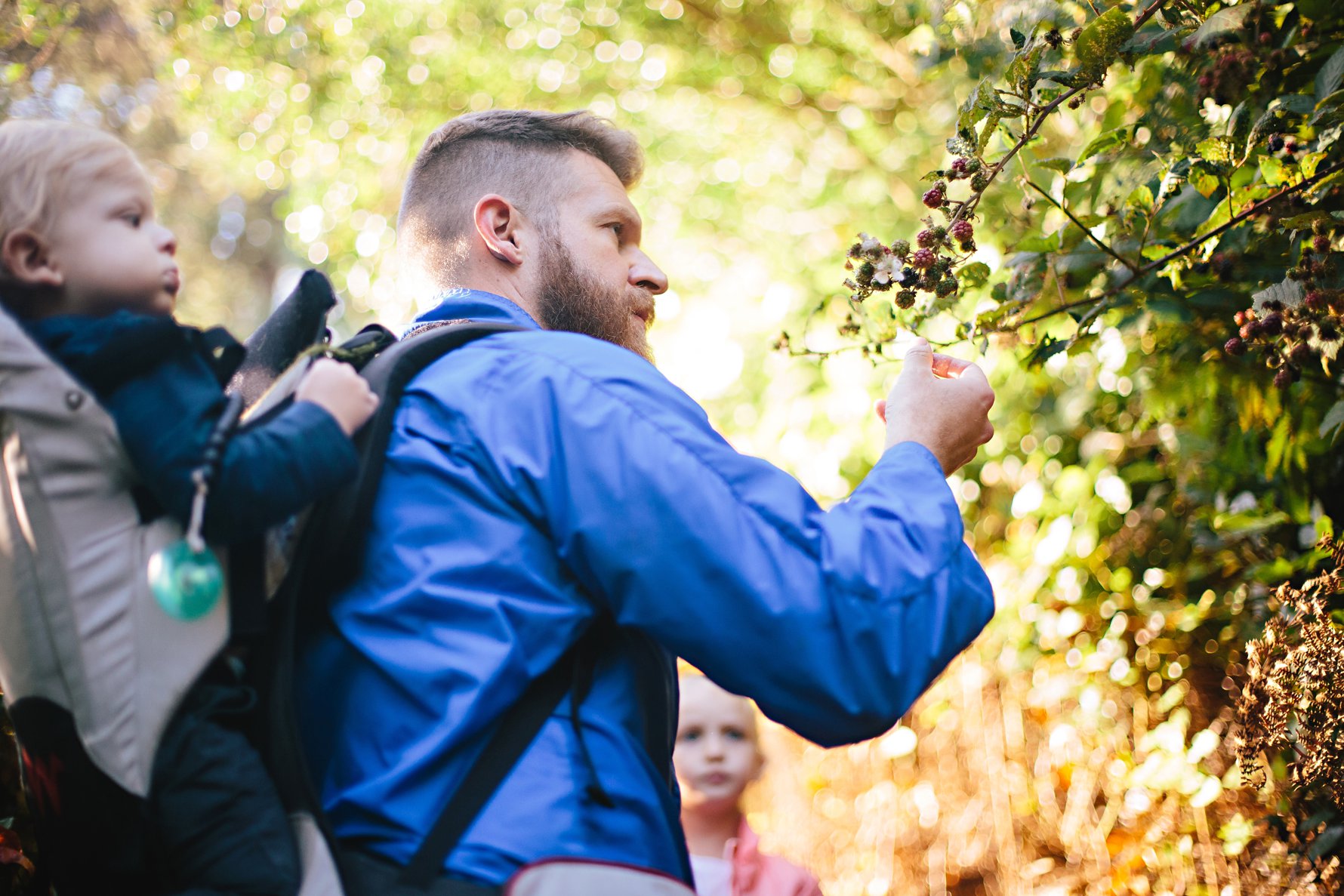 As the forest opened, blackberry briars began lining the path. Isaac and Isla had a fabulous time picking and eating!