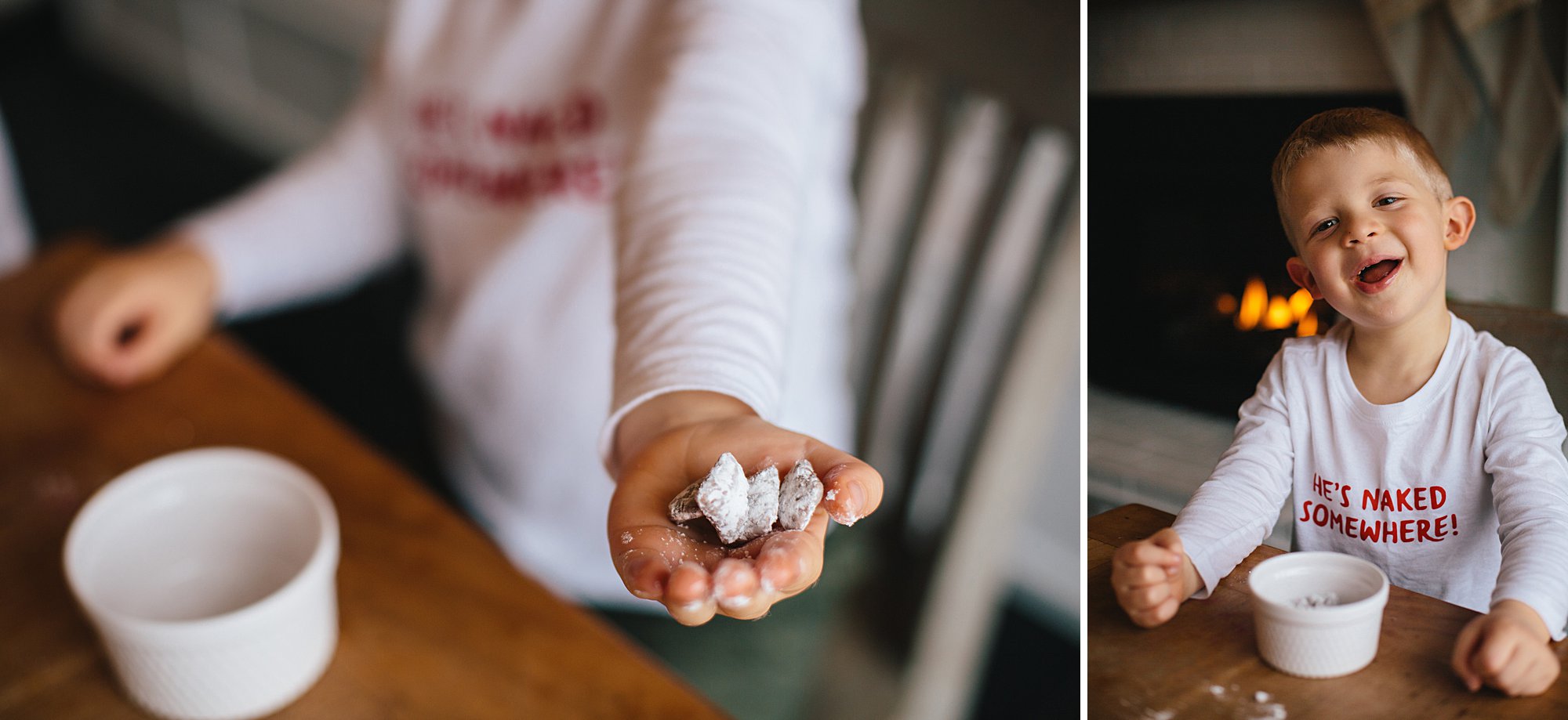 The kids and I made puppy chow during the day and they LOVED the process— and the taste testing, of course! I gave them each their own little paper bags to shake, and they giggled like crazy. ⠀
