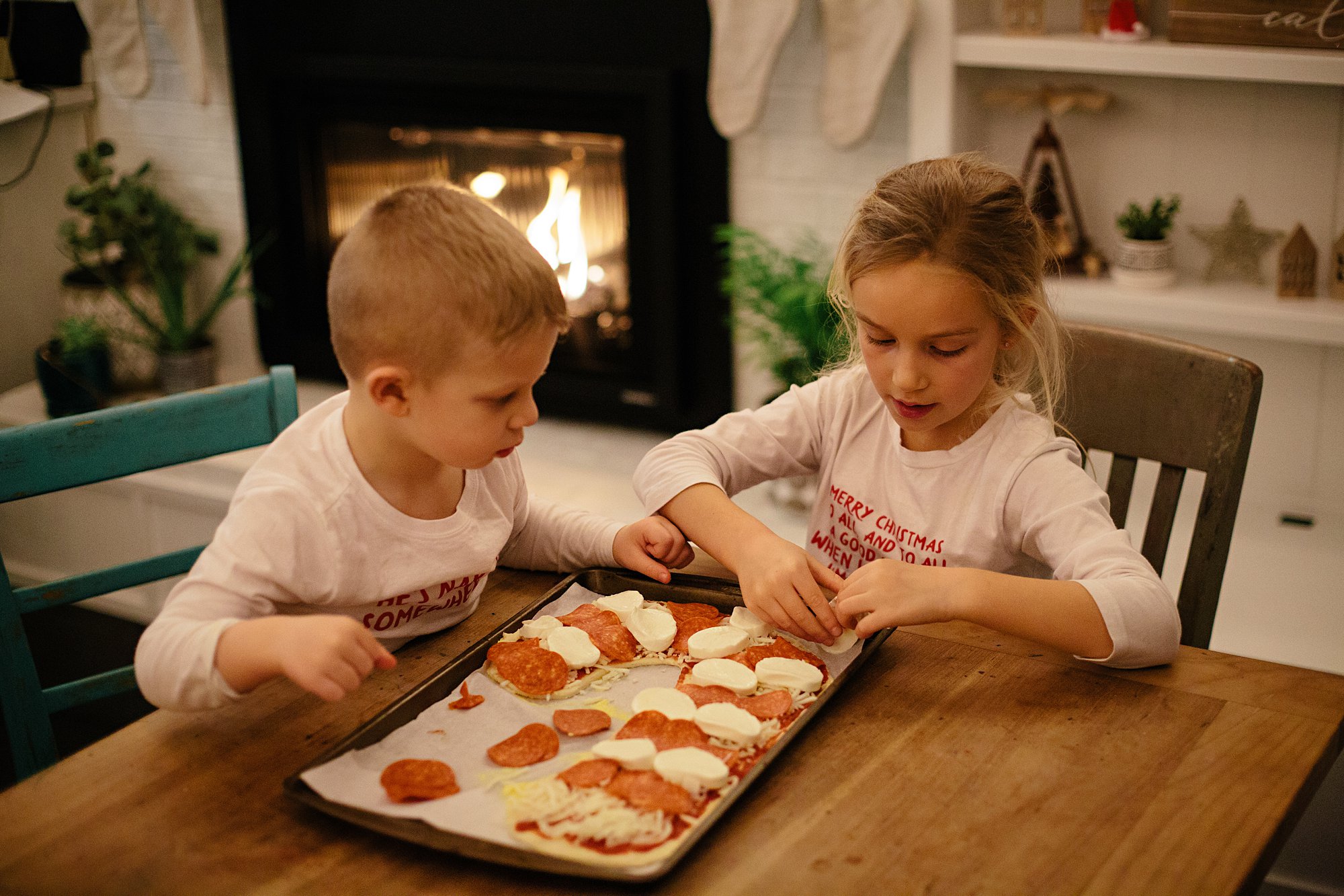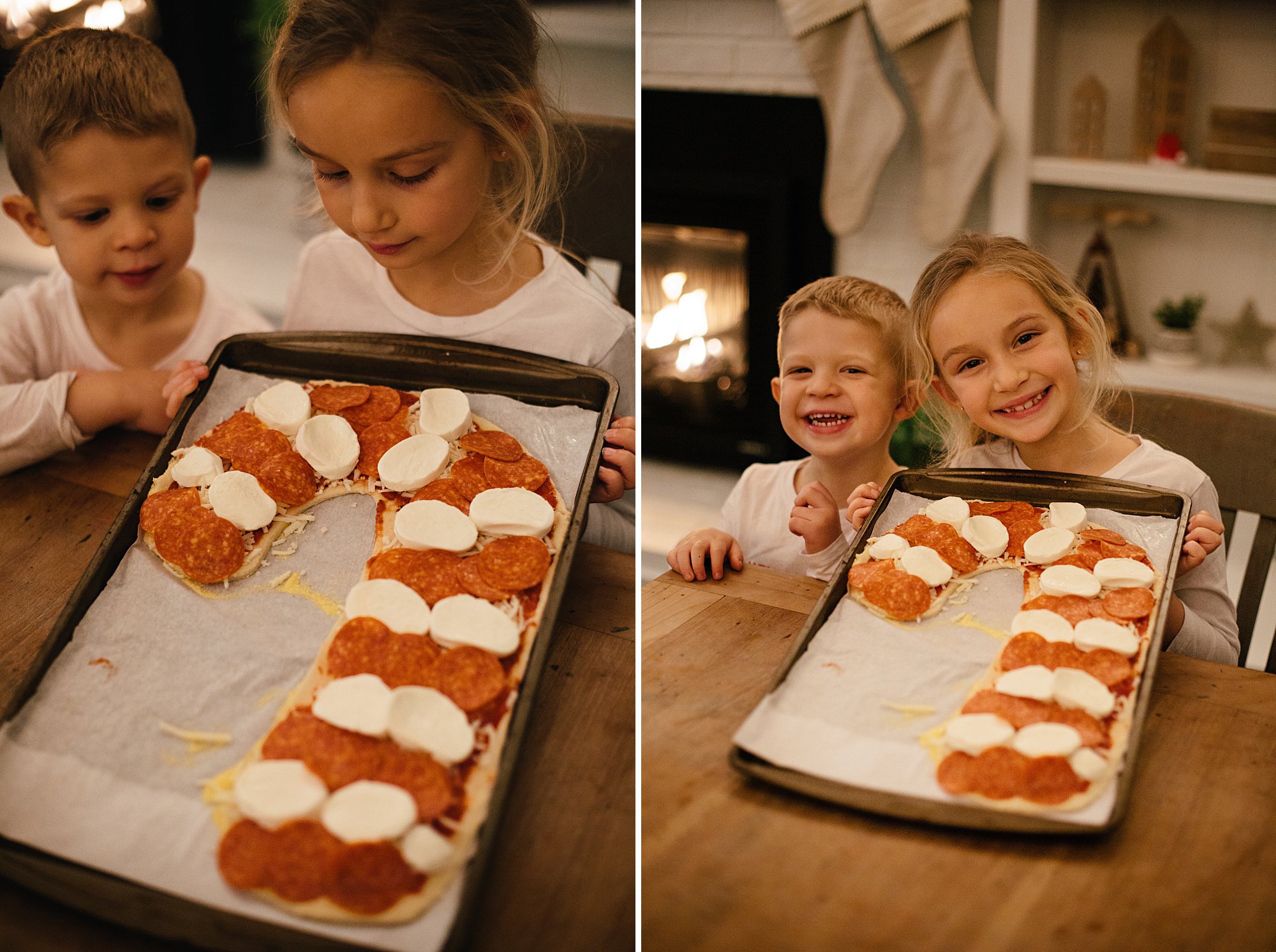That evening we made Christmas shaped pizzas for dinner; a pepperoni and cheese candy cane and a pesto, spinach and artichoke wreath. Then, we cozied up with all our tasty treats and watched Christmas movies. It was the perfect way to wrap up our busy week!