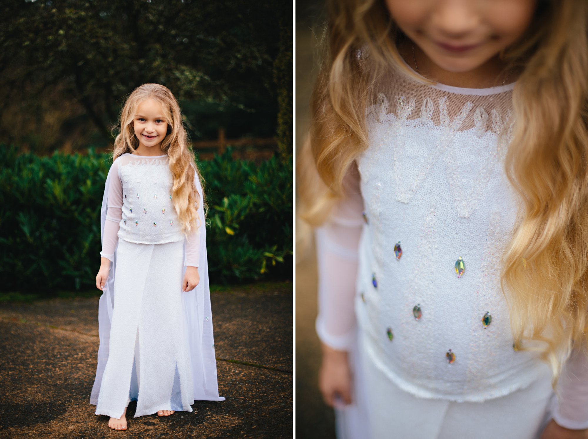 Grauntie and I definitely ventured into the unknown when we decided to design and create the white Elsa dress from Frozen 2 for Isla based off of a few blurry photos from the internet. It took numerous trips to the craft store, several redesigns, and hours upon hours of work, but seeing this joyful reaction made every challenge completely worth it!!!