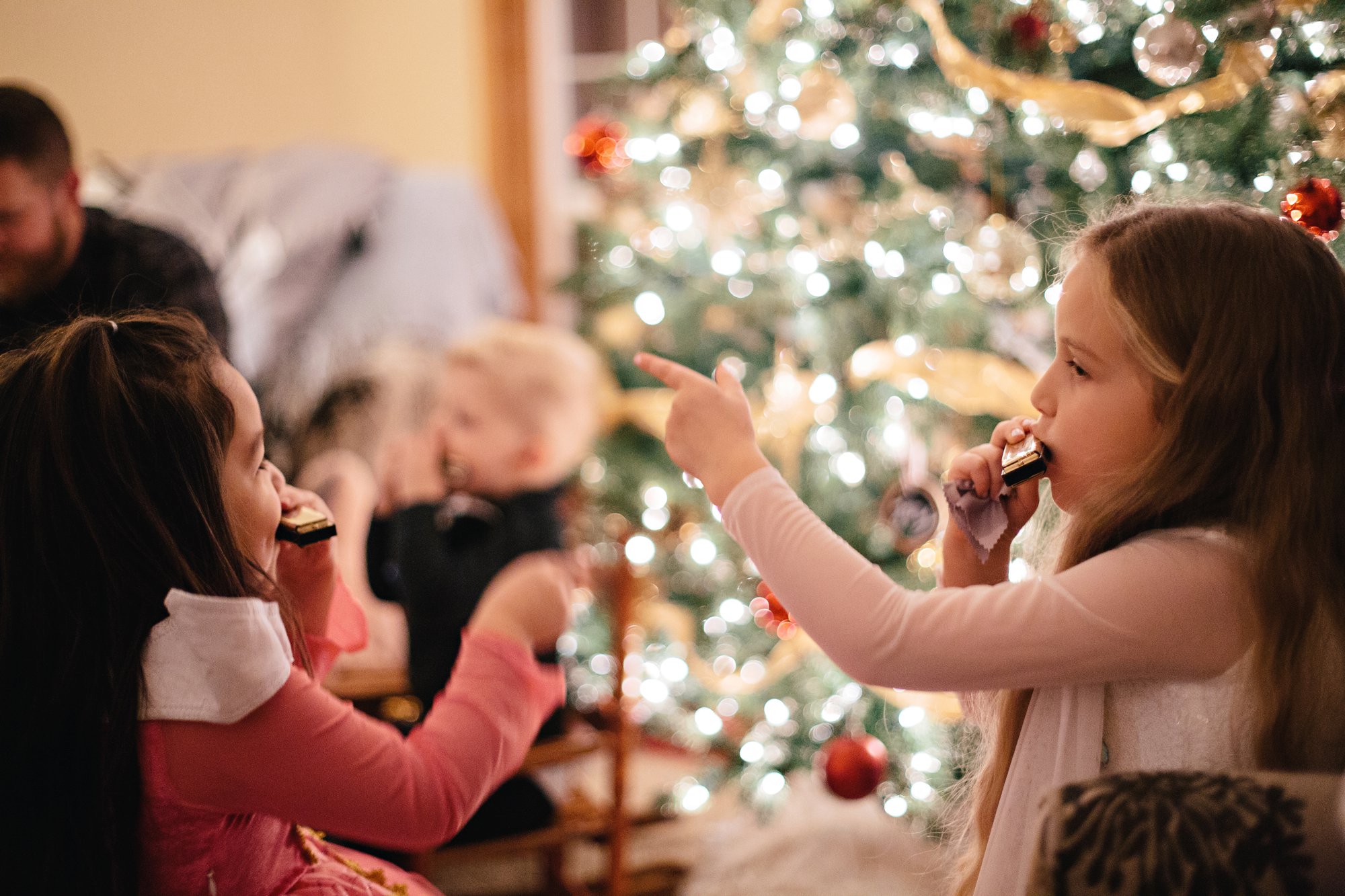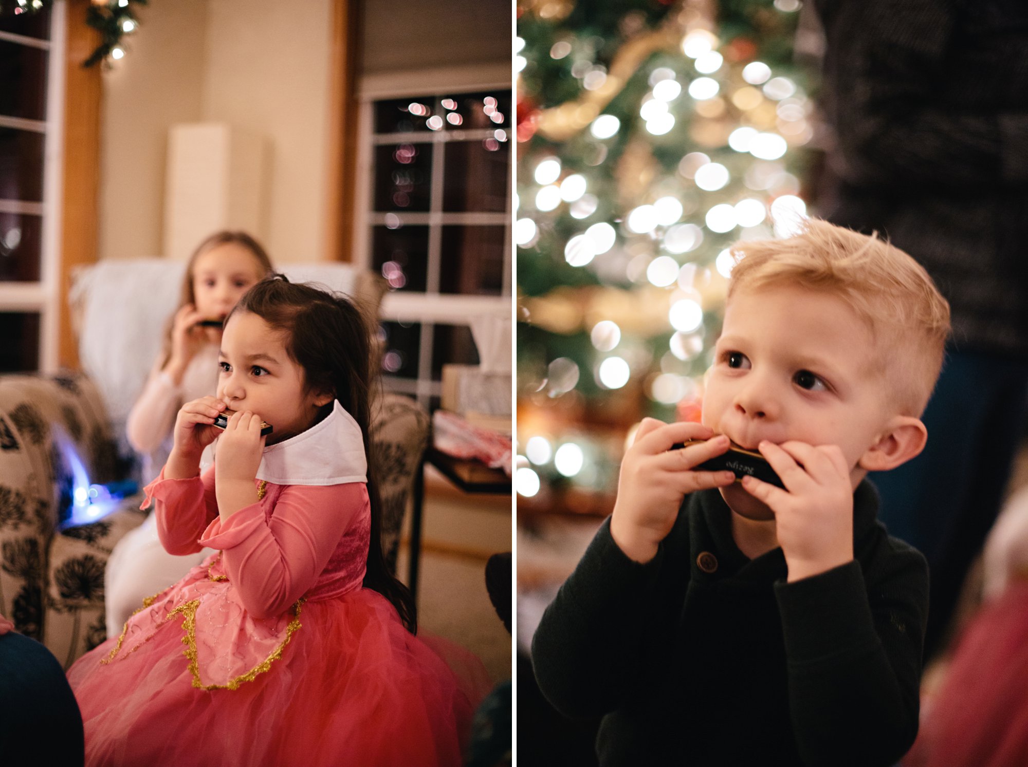 Christmas Eve 2019 was a cozy one with the Marshall Fam! Our evening began with a candlelight service at church, and was followed by an appetizer dinner, happy conversation, thoughtful gift exchange, and lots of harmonica playing! Nana and Papa gifted each of the grand kids their own harmonica and they happily played them throughout the evening! Papa has played the harmonica for years so we are hopeful he can teach Isla and Cole the basics. We deeply appreciate when people give gifts from the heart that encourage connection and the sharing of interests! Nana and Papa also gave all the grand kids walkie talkies that work together and they were a huge hit! The walkie talkies have a several mile range, so we cannot wait to try them out with all the cousins at the beach next year! I can already envision the silly giggling and make believe they’ll share as they call each other, and that makes my heart so happy!