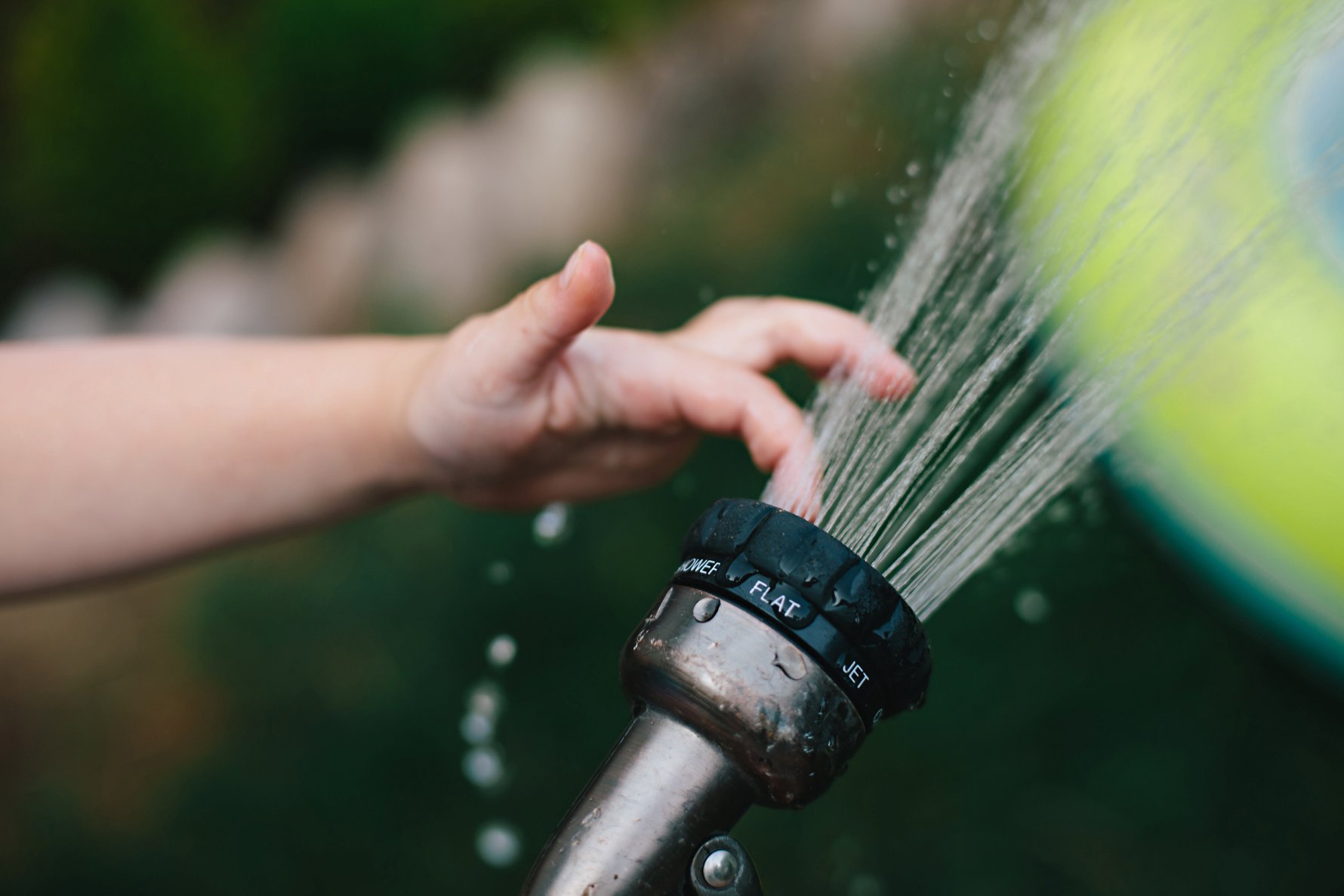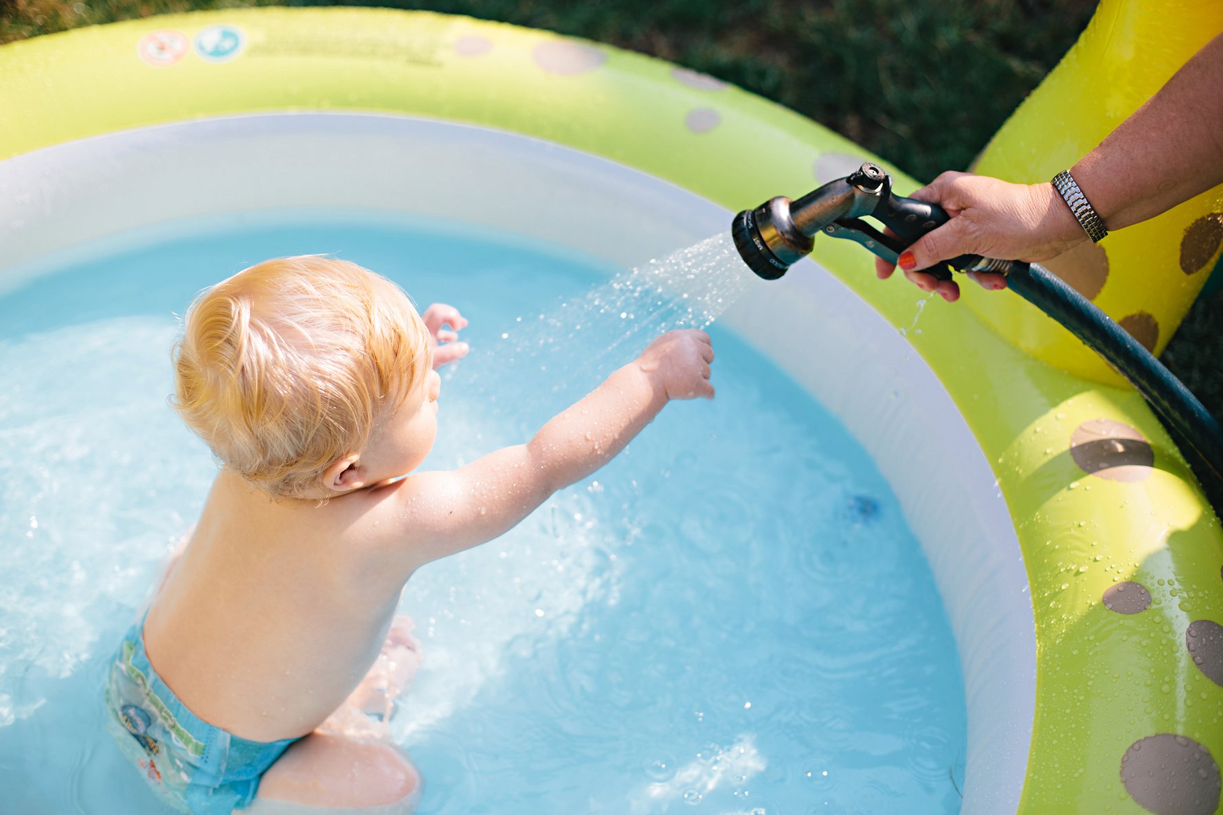 To wrap up pool time, we gave Madelyn the hose. Cole retreated to a safe distance and watched from there. Smart kid!