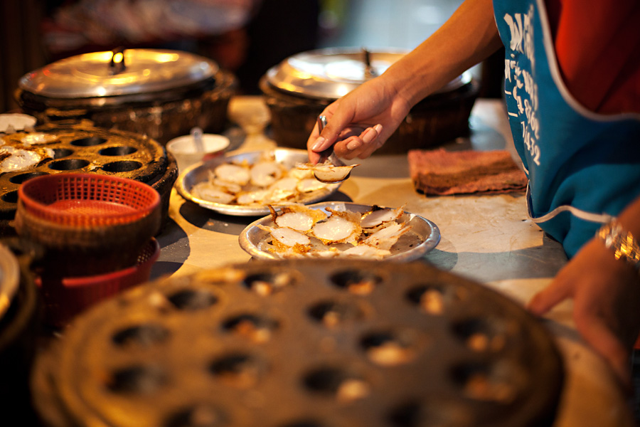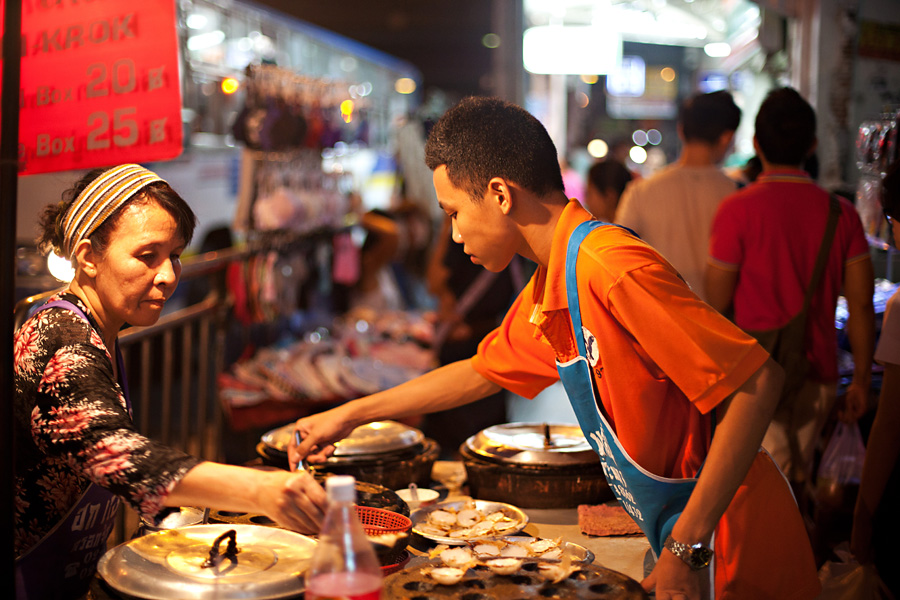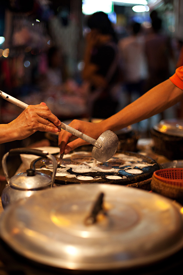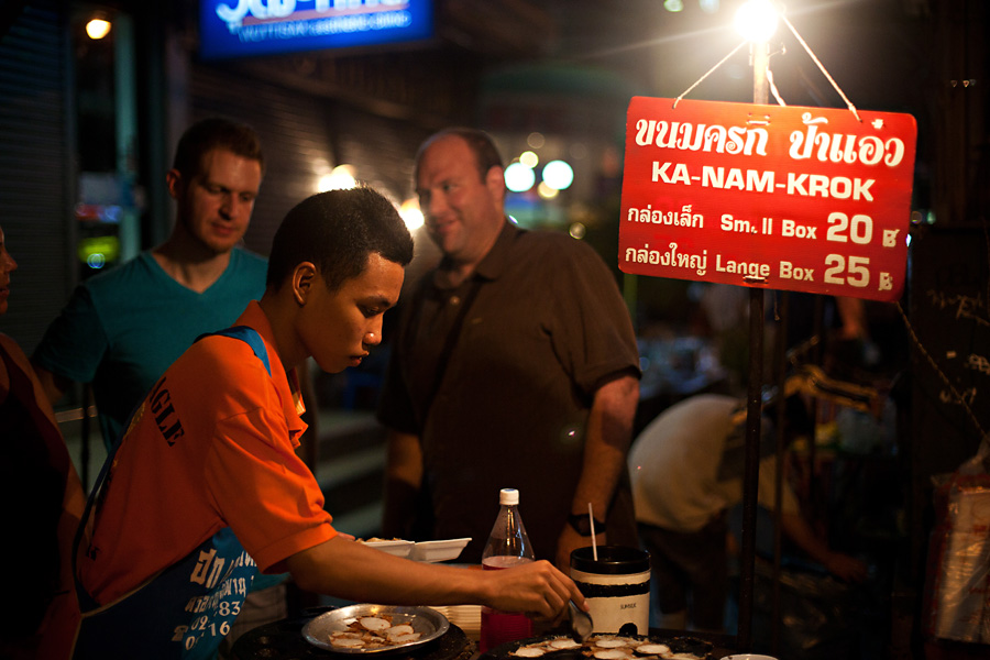 We arrived at the Bossotel sometime around 1:30 am, quickly checked in and headed straight to bed, as we had to be up early for the conference. Surprisingly, waking up wasn’t as hard as expected and we made it to the conference with plenty of time to get checked in. Our day was filled with meaningful, inspiring presentations! Often these sessions were held in small rooms that were packed to the gills. At our final session of the day, I saw a man peek in and instantly recognized his face. He turned out to be our dear friend Toby’s brother! I absolutely love when instances like that occur and the world feels a little smaller! We had a wonderful time getting to know Travis and invited him to join us for dinner that evening, as we were meeting with Julie. We met at our favorite little corner restaurant that we eat at every time we travel to Bangkok. Julie, now a bronze version of her former self after two months in Thailand, arrived with a beautiful orchid bouquet. I didn’t tell Julie about running into Travis, and instead let her recognize the family resemblance and enjoy the surprise! We enjoyed a merry evening visiting with Julie and our new Tebo friends, all while feasting on the most delicious pad thai and icy singhas. As the night grew later we walked along Charoenkrung Rd in search of our favorite coconut custards for dessert. These steaming, creamy little sweets did not disappoint! We bid a sad farewell to Julie at this point, as she had an early flight to Bali to catch, and then returned to the Bossotel for an hour of glorious foot rubs! A perfect end to our fabulous fist day in Bangkok!