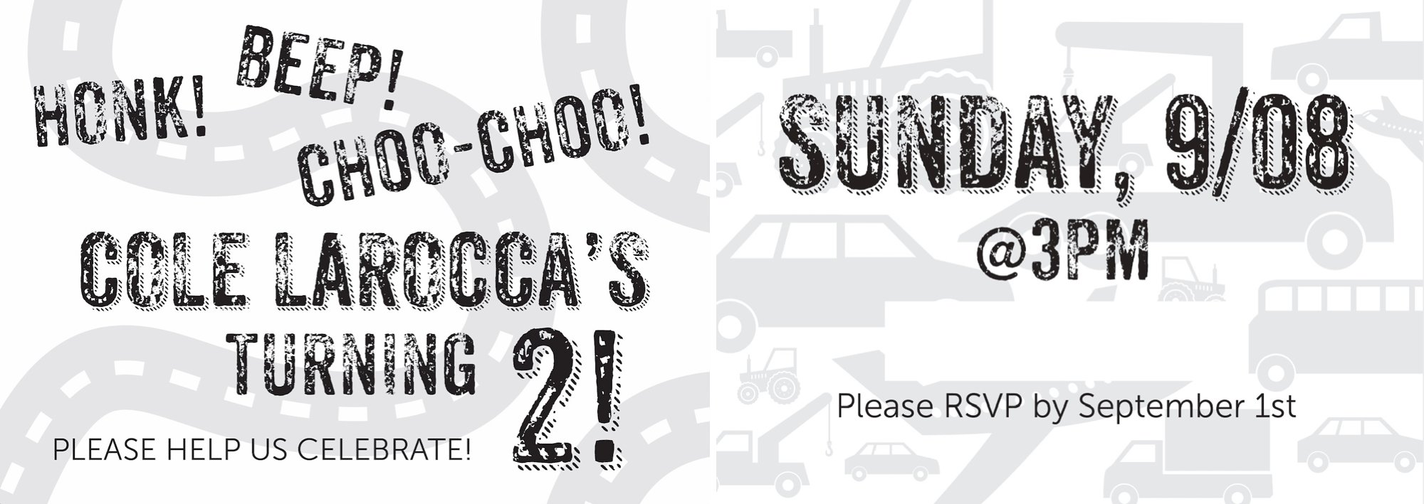 Isaac designed this adorable invitation (front on the left, back on the right). As always, we uploaded the design to Paperless Post and e-mailed it to our guests so that we could track everything online.