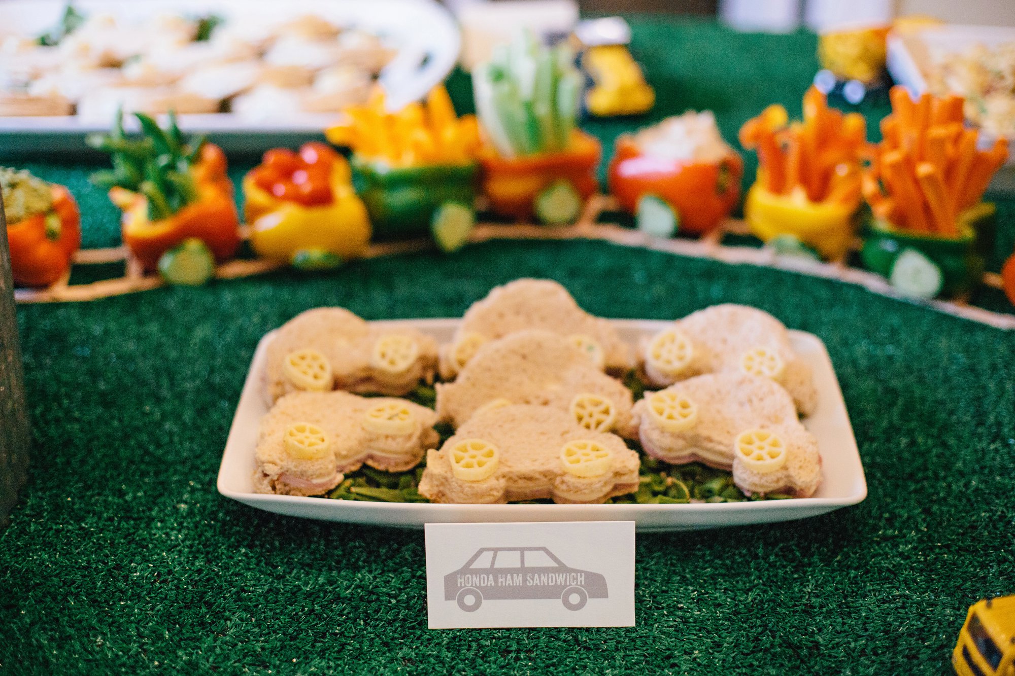 We served Honda Ham Sandwiches and Toyota Turkey Sandwiches, made with the car cookie cutters from this adorable set. A huge thank you to Kitchen Kaboodle for having these in stock and saving my hiney at the last minute!