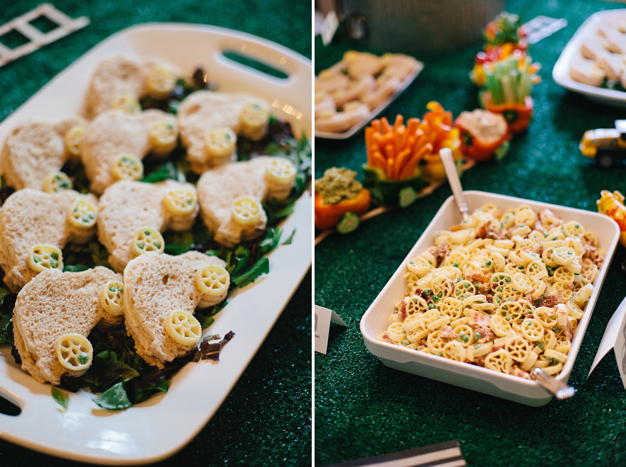 My mom added the wheels from the pasta salad to the car sandwiches and they were a perfect fit!