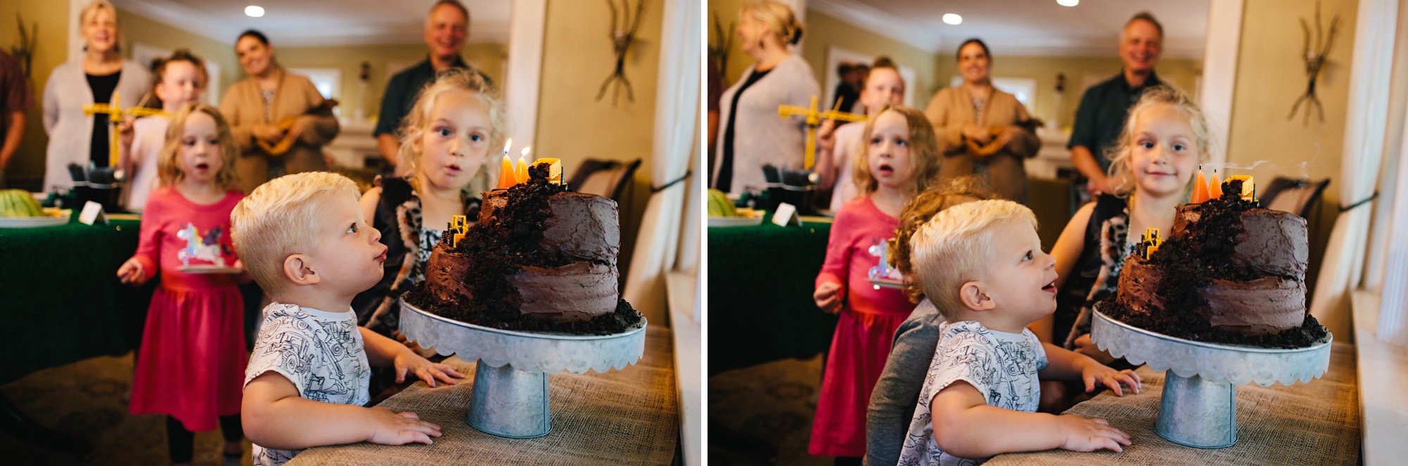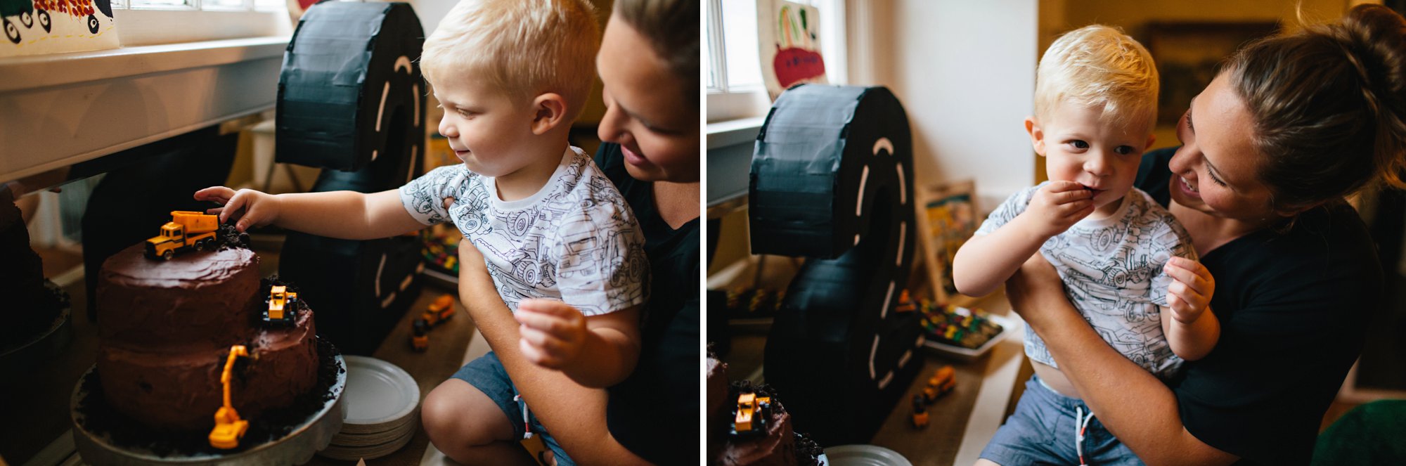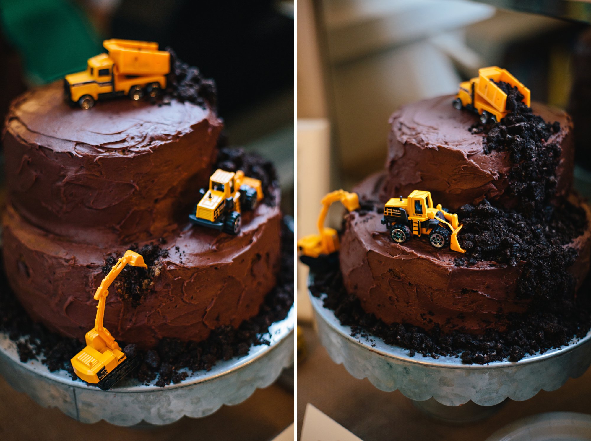 Unfortunately I didn’t have my camera near by when Cole saw his cake for the very first time. His eyes grew so wide and he squealed, “Oooooh, dump truck cake! Happy birthday to you!” We took some photos later and I let him steal a few bites of Oreo from the back of the dump truck– the perks of being the birthday boy!