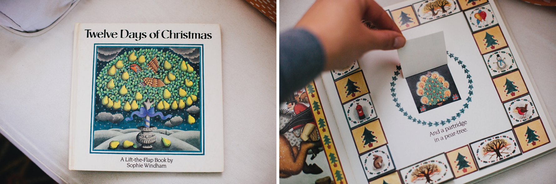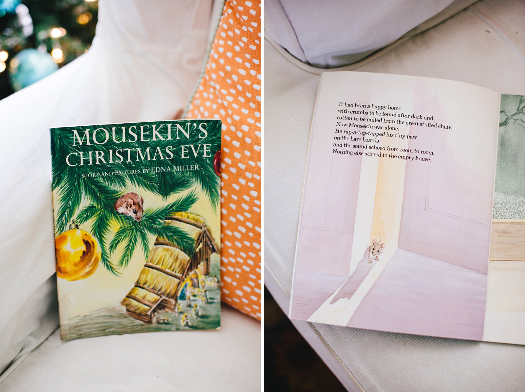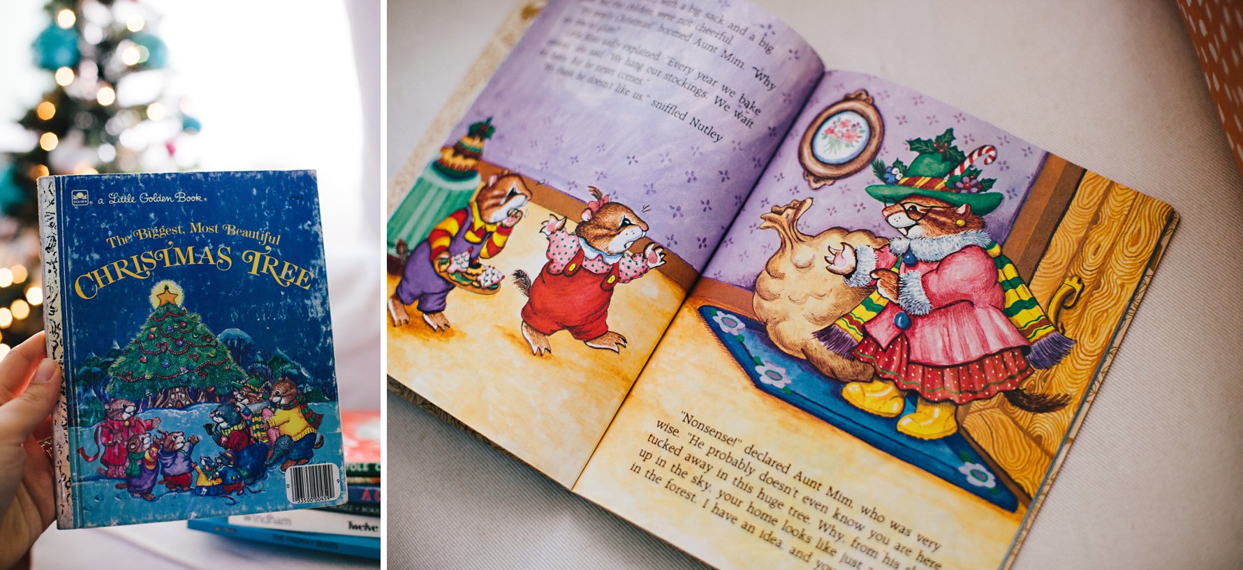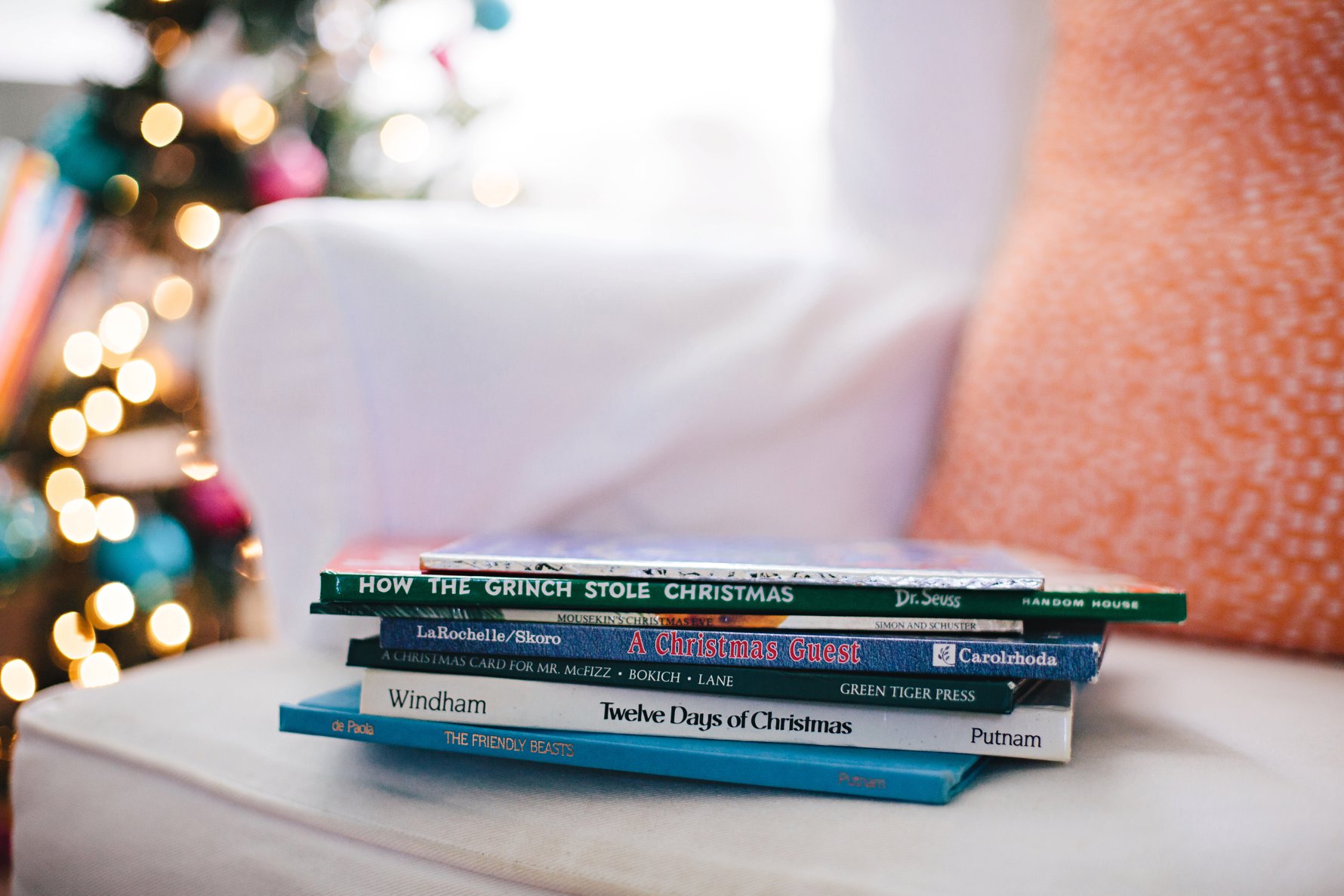 First up, my favorite Christmas book of all time, hands-down! A Christmas Card for Mr. McFizz embodies all of the qualities that make a picture book absolutely magical to me: a beautiful lesson, brilliantly witty writing, and stunning illustrations. Mr. McFizz, a fastidious and fussy (but good-hearted) critter, learns to overcome loneliness and jealousy after a family of pack rats moves in next door. Just seeing the cover makes my heart all kinds of warm and fuzzy! The above photo shows my mom’s favorite page of the book. I don’t think she’s ever read this line without completely cracking up and commenting on the genius of the writing. I now find myself joyfully anticipating this line as I am reading to Isla.A Christmas Guest gives me a lump in my throat every time I read it. It is the story of a how young boy and his mom help an elderly woman who appears at their door on Christmas Eve. It is such a beautiful reminder of the importance of giving to others.What is it about Little Golden Books that instantly evokes such strong childhood nostalgia?! The Biggest, Most Beautiful Christmas Tree was one of my most read and highly treasured Christmas books, as you can clearly see from the well-loved cover. It’s a sweet, simple tale about a group of critters who were sad that Santa never came to their tree. Great Aunt Mim came for a visit and inspired them to decorate their home, turning it into the biggest, most beautiful Christmas tree, in an effort to catch Santa’s attention.We love all the Mousekin books! I was so captivated by the illustrations when I was little, and Isla is now. Mousekin’s Christmas Eve follows Mousekin as he unexpectedly searches for a new home and settles in the coziest place.Speaking of illustrations, aren’t Tomie dePaola’s so stunning?! We have a number of his books, but our favorite is The Friendly Beasts. It tells the Christmas story from the perspective of the animals of the manger.In Sophie Windham’s version of the The Twelve Days of Christmas, her illustrations are so charming you don’t mind the reading through the whole repetitive song! Ha! Isla loves lifting every single flap on each page, and I remembering spending so much time doing the same when I was little.