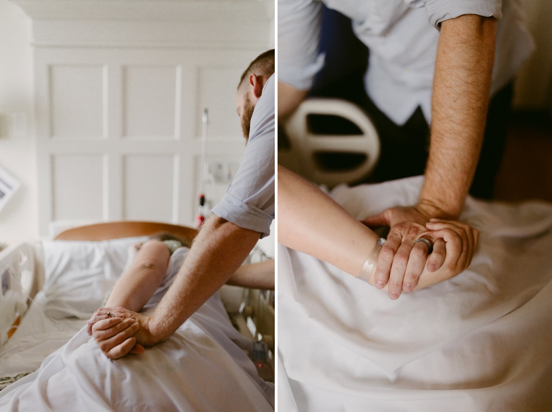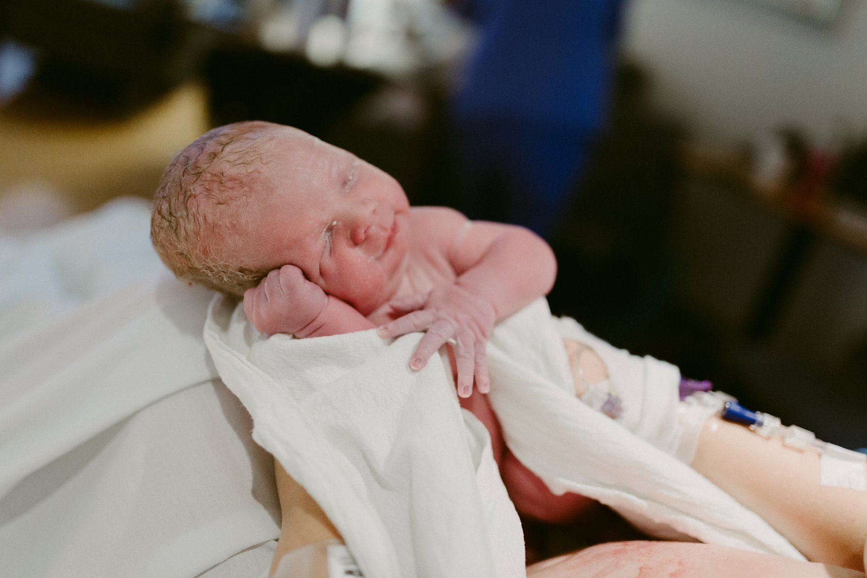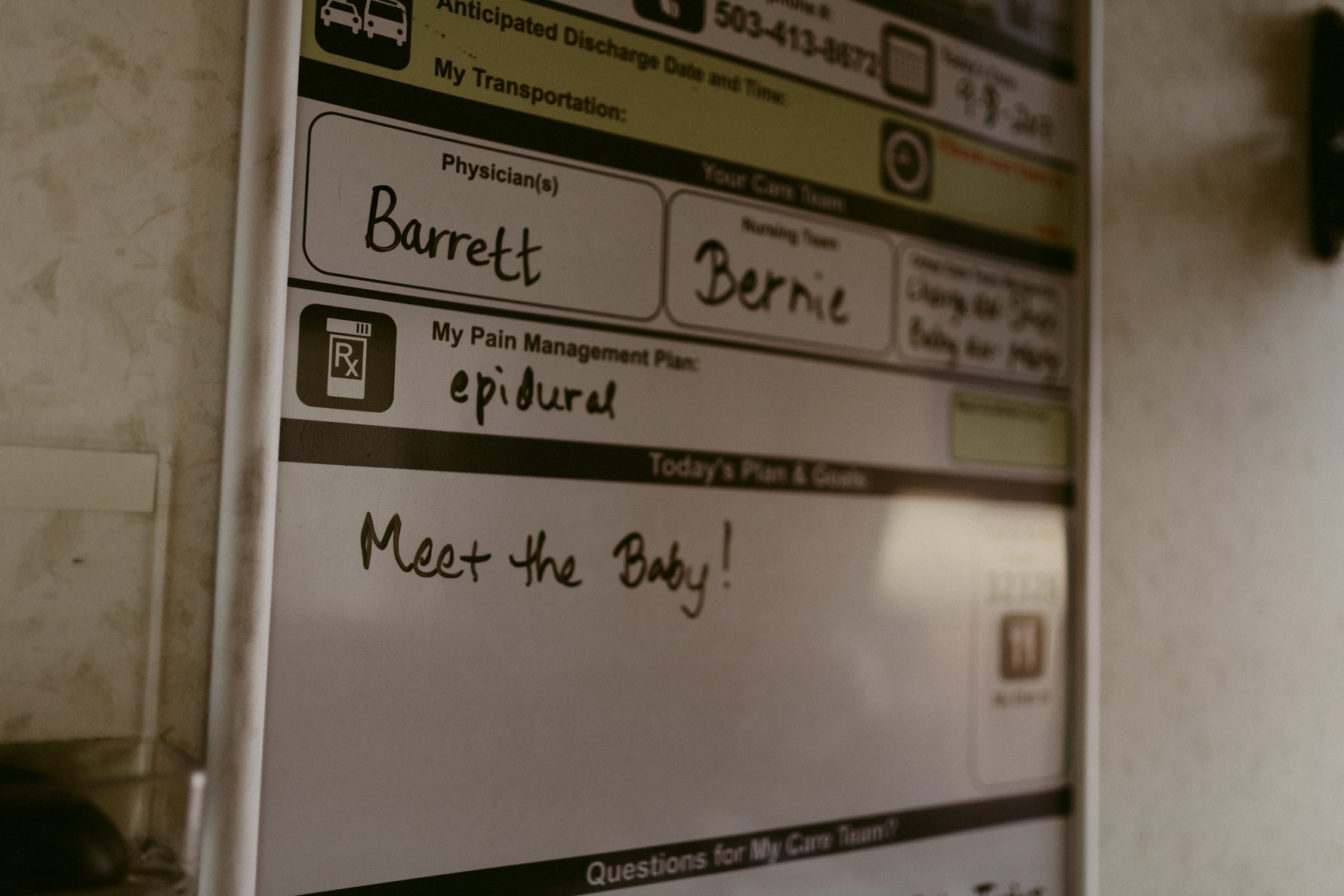 After arriving at the hospital, I was placed on monitors and given a cervical softener to start the induction. It turned out I was already having light, but regular contractions. Effacement and dilation were also underway, so that was all positive news. Isaac and I slept as well as you can on hospital furniture for the night, and early the next morning our amazing OB, Dr. Barrett, arrived to check on our progress. She broke my water at 9:00am and started Pitocin to get the contractions moving along. Having all back labor with Isla, I was absolutely shocked at how much more tolerable these contractions were, and it was so fascinating to actually feel them around my belly. How crazy that birth experiences can vary so greatly for the same mother!