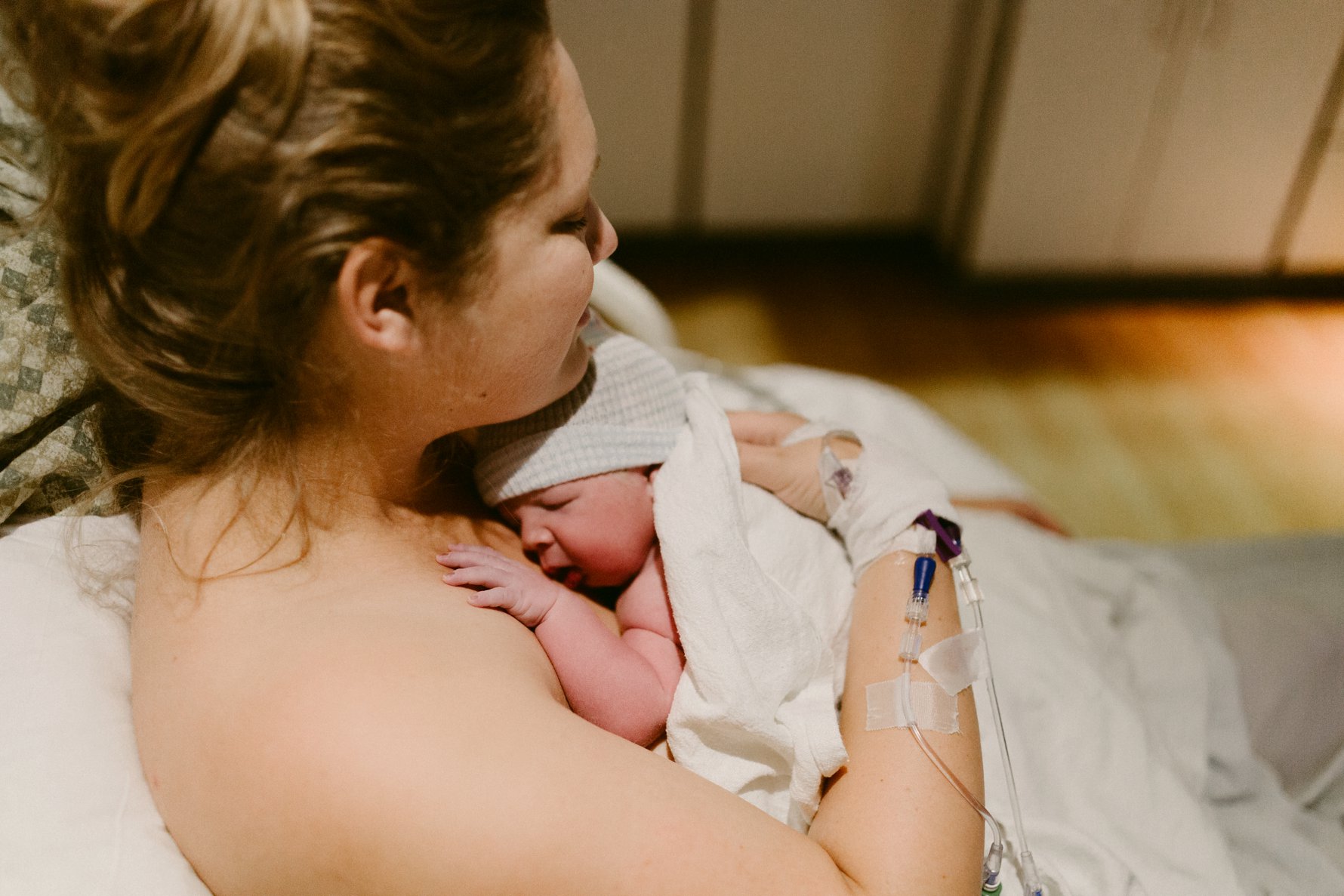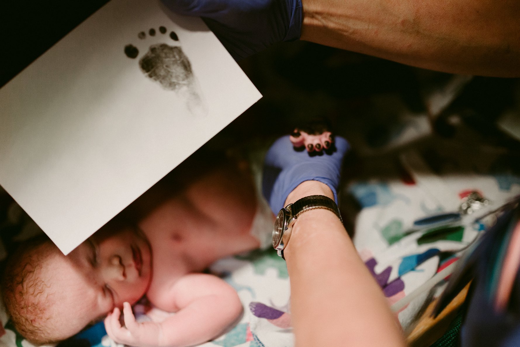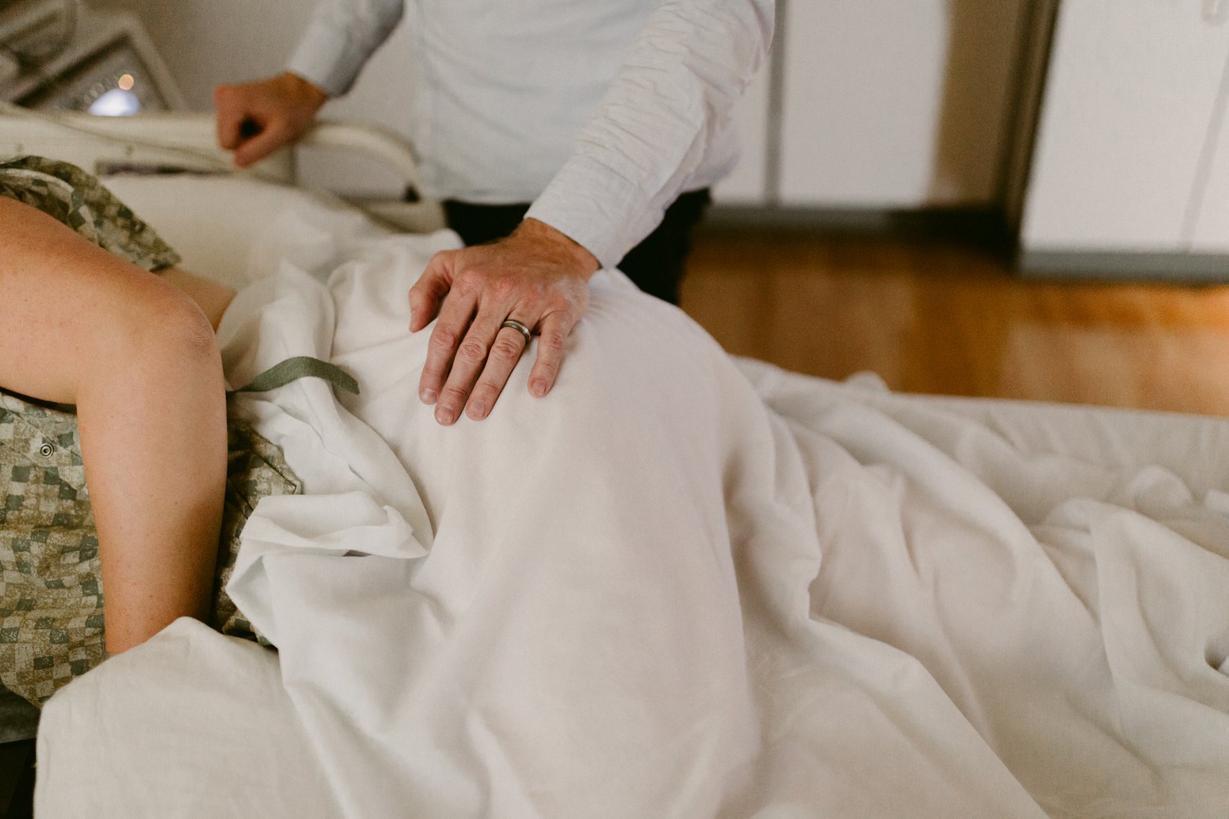 After arriving at the hospital, I was placed on monitors and given a cervical softener to start the induction. It turned out I was already having light, but regular contractions. Effacement and dilation were also underway, so that was all positive news. Isaac and I slept as well as you can on hospital furniture for the night, and early the next morning our amazing OB, Dr. Barrett, arrived to check on our progress. She broke my water at 9:00am and started Pitocin to get the contractions moving along. Having all back labor with Isla, I was absolutely shocked at how much more tolerable these contractions were, and it was so fascinating to actually feel them around my belly. How crazy that birth experiences can vary so greatly for the same mother!