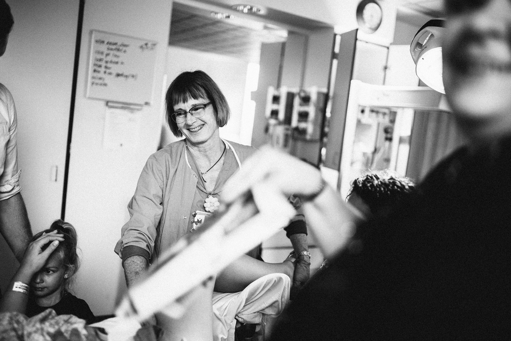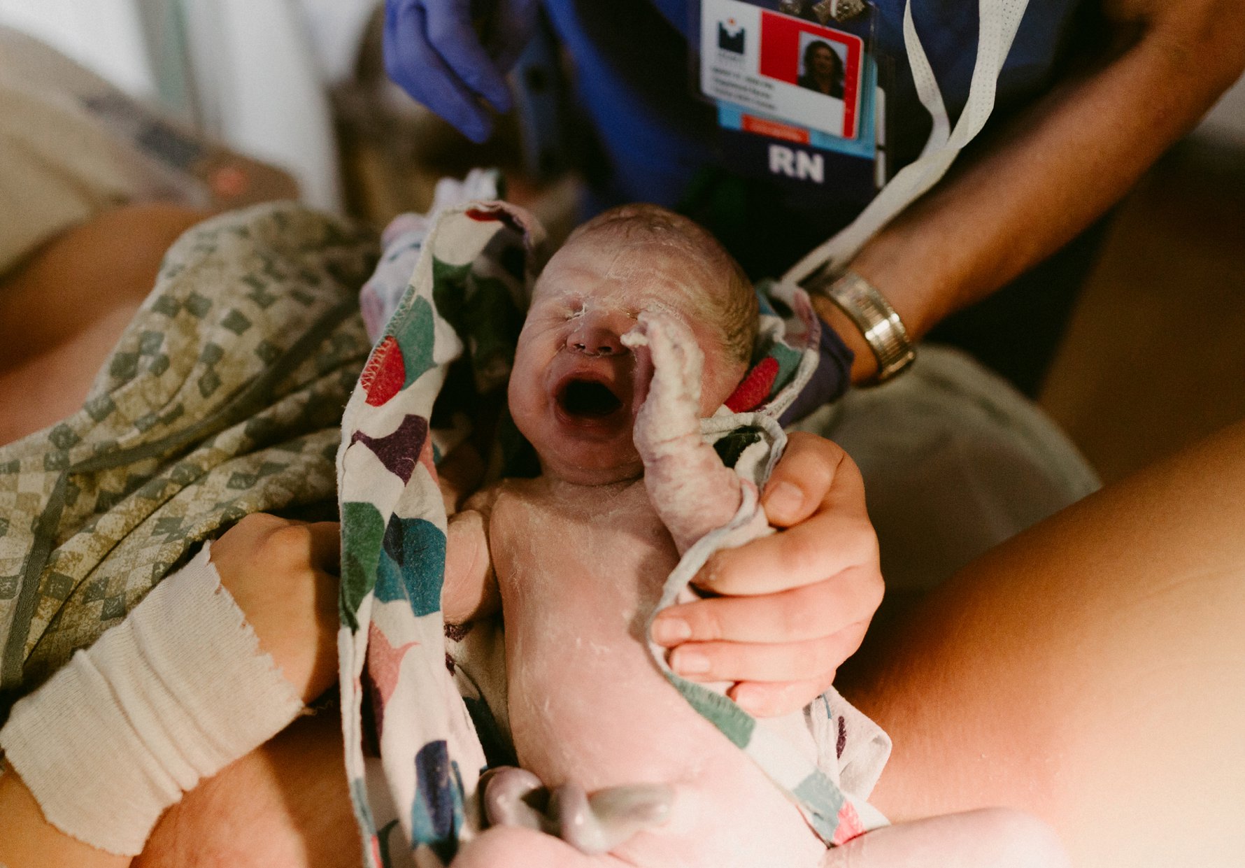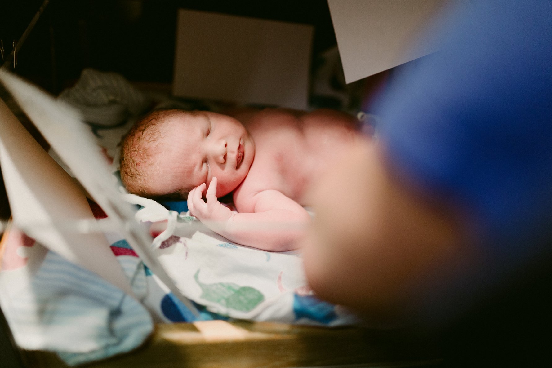 So, our birthing suite was filled with people we love, contractions were growing in intensity, and everything was progressing beautifully. I was having some increased pain in my back around my SI joints, so somewhere around 6 cm I decided to get an epidural. For the next few hours I chose to rest, falling peacefully in and out of sleep, preparing for all the action ahead. I could feel the excitement and positive energy around me as we neared the delivery, and it was so comforting to have such great support from everyone throughout the day. Dr. Barrett came to check me again and Cole had turned so that he was face up. I spent an hour or two on my forearms and knees in an attempt to get him to turn again. An hour or so later I was checked again, and it was time to start pushing.