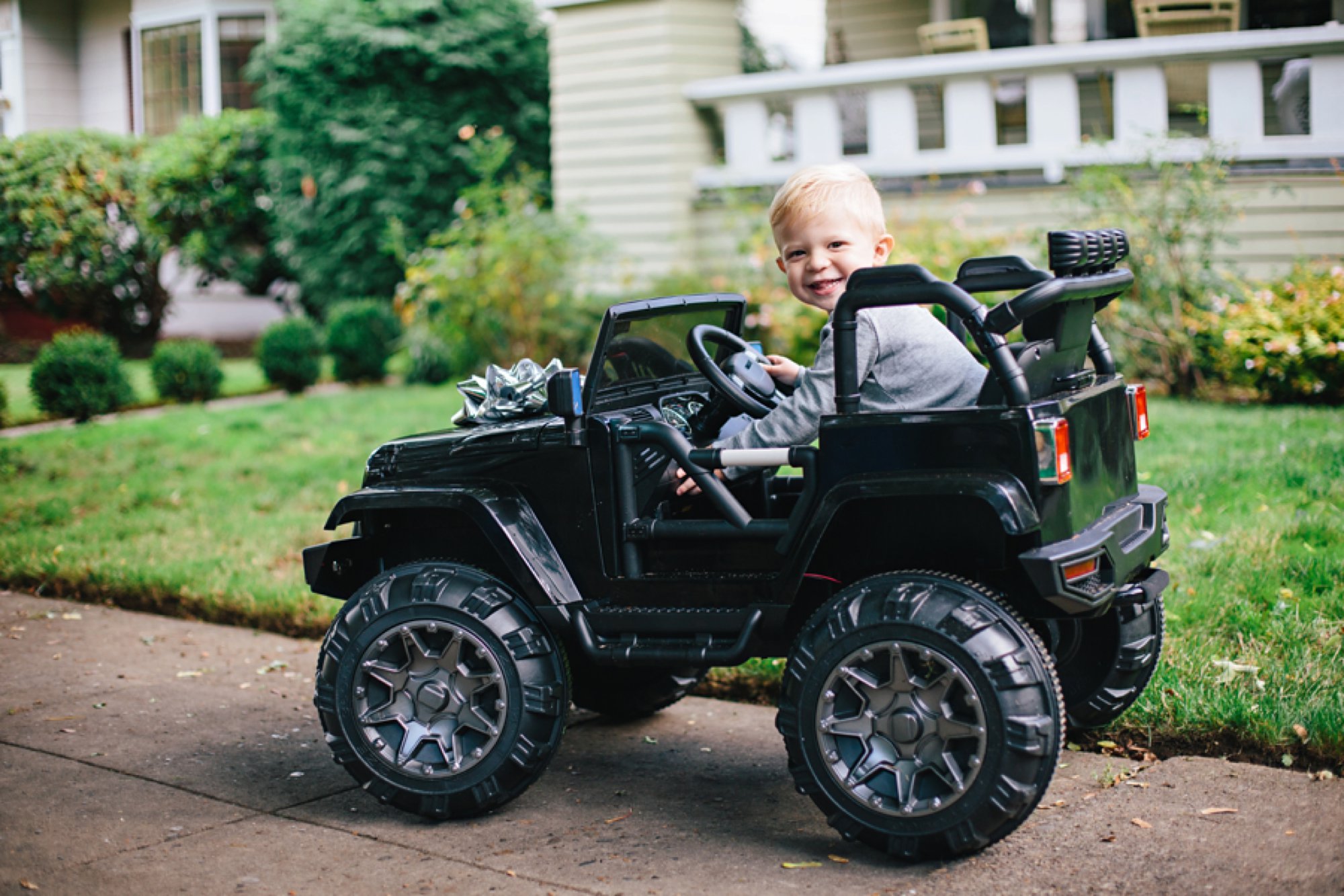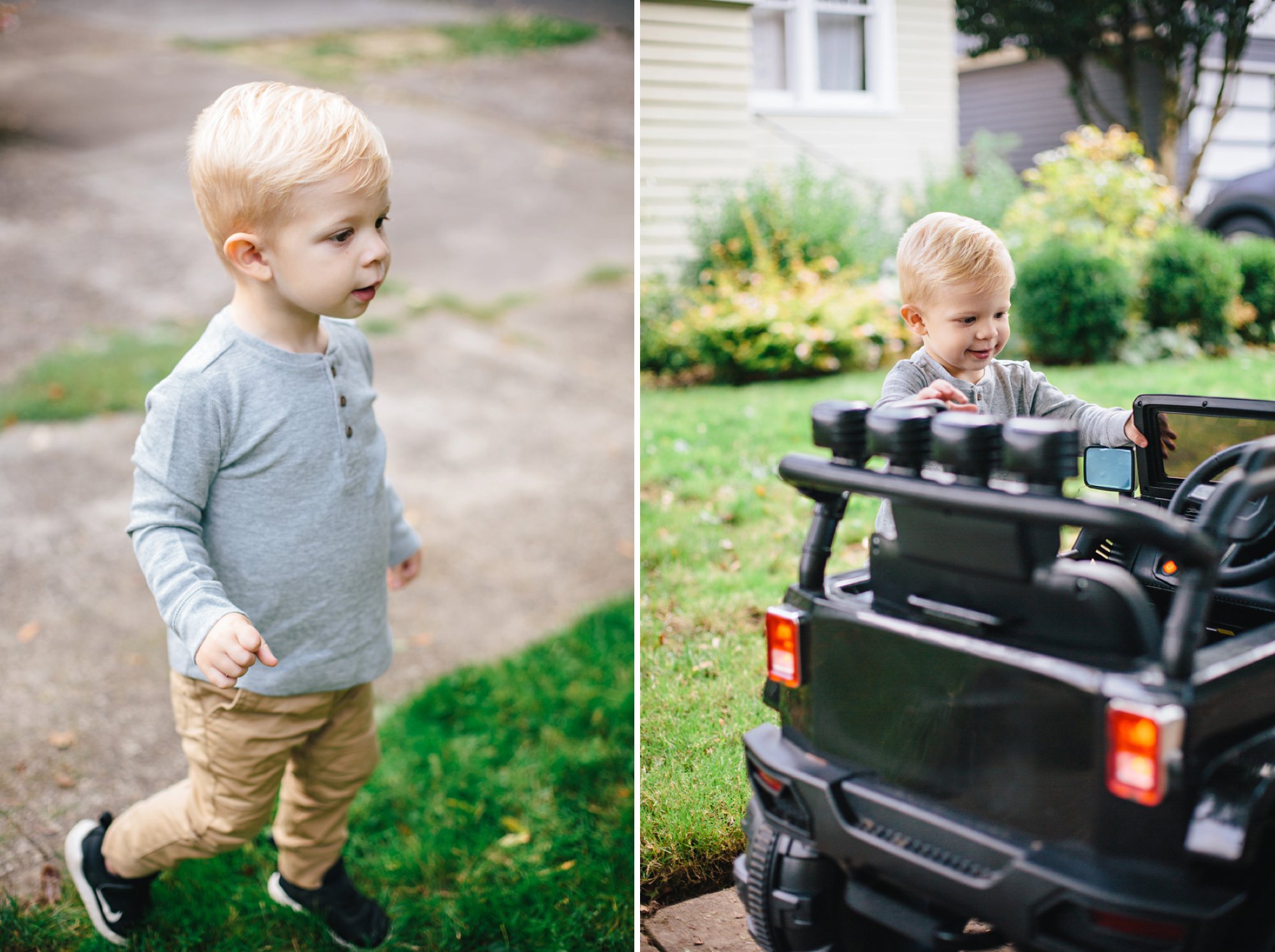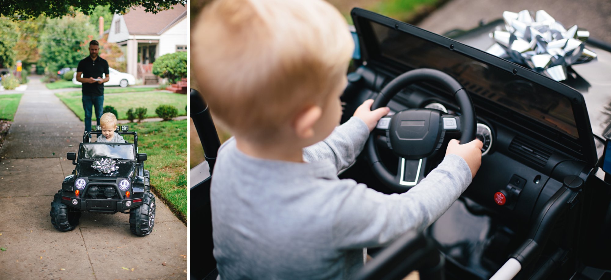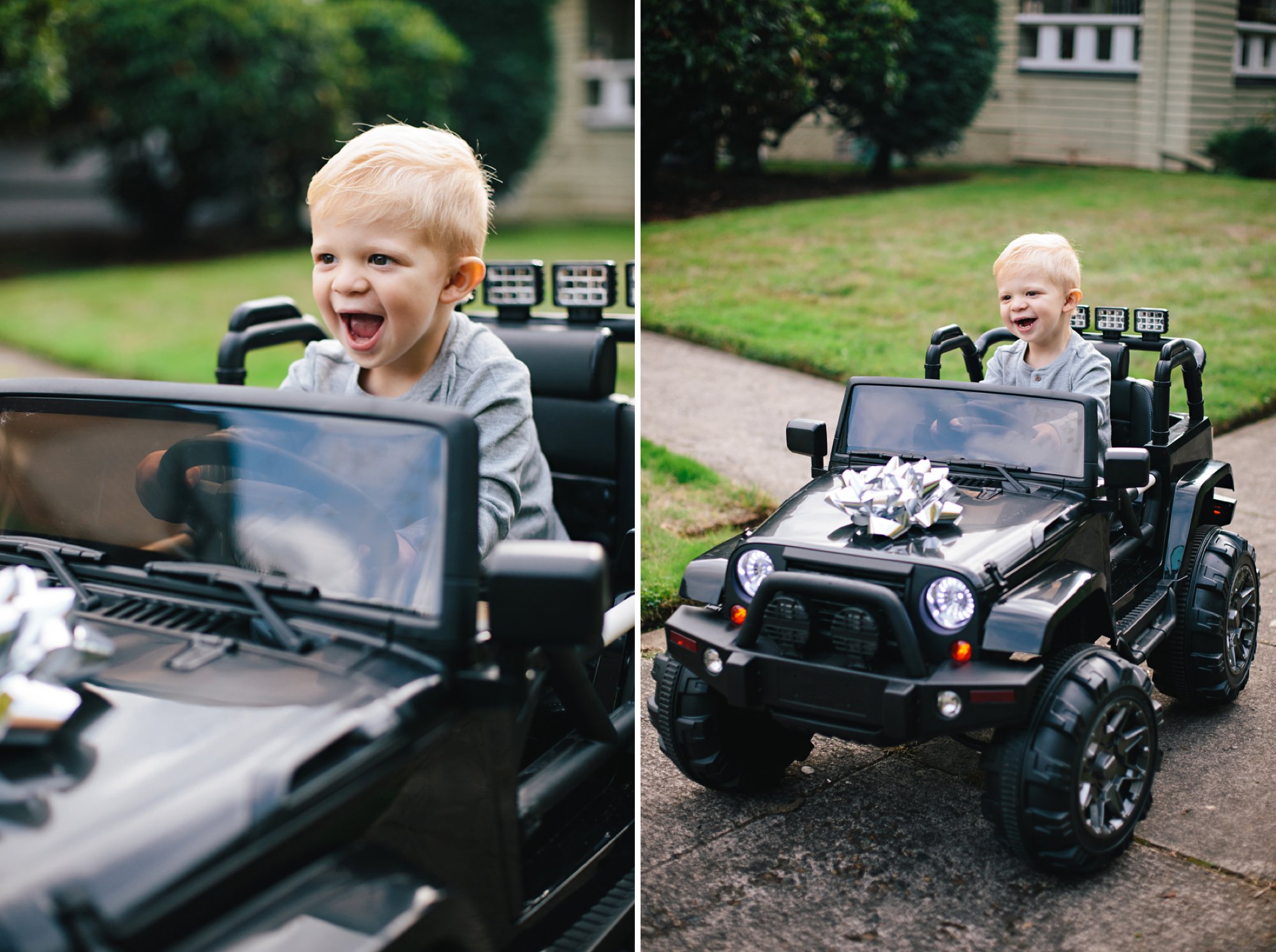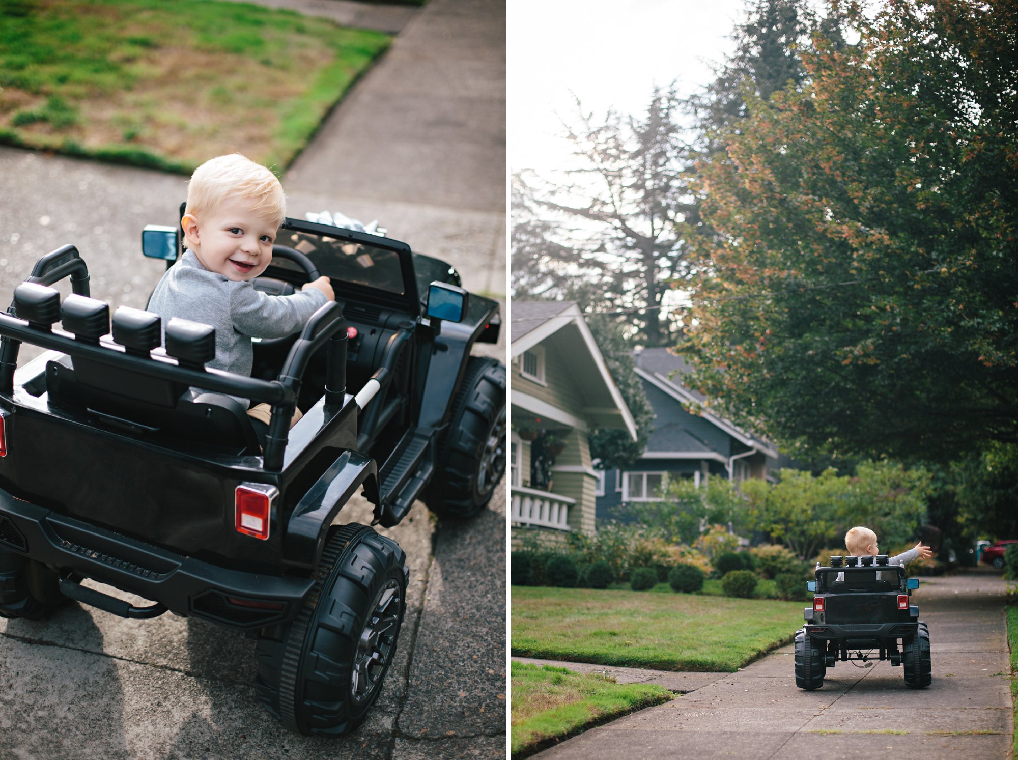 Cole had the best time cruising up and down the sidewalk, exploring each and every feature of the truck, giggling like crazy, and proudly waving at all the neighbors. It was amazing! I foresee many happy neighborhood drives in our future.