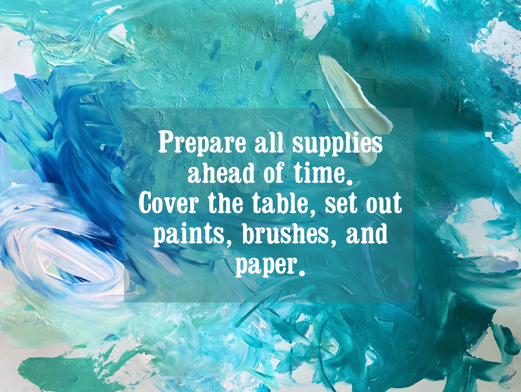 • Set up your painting station. Cover the table, put smock on, get tools ready