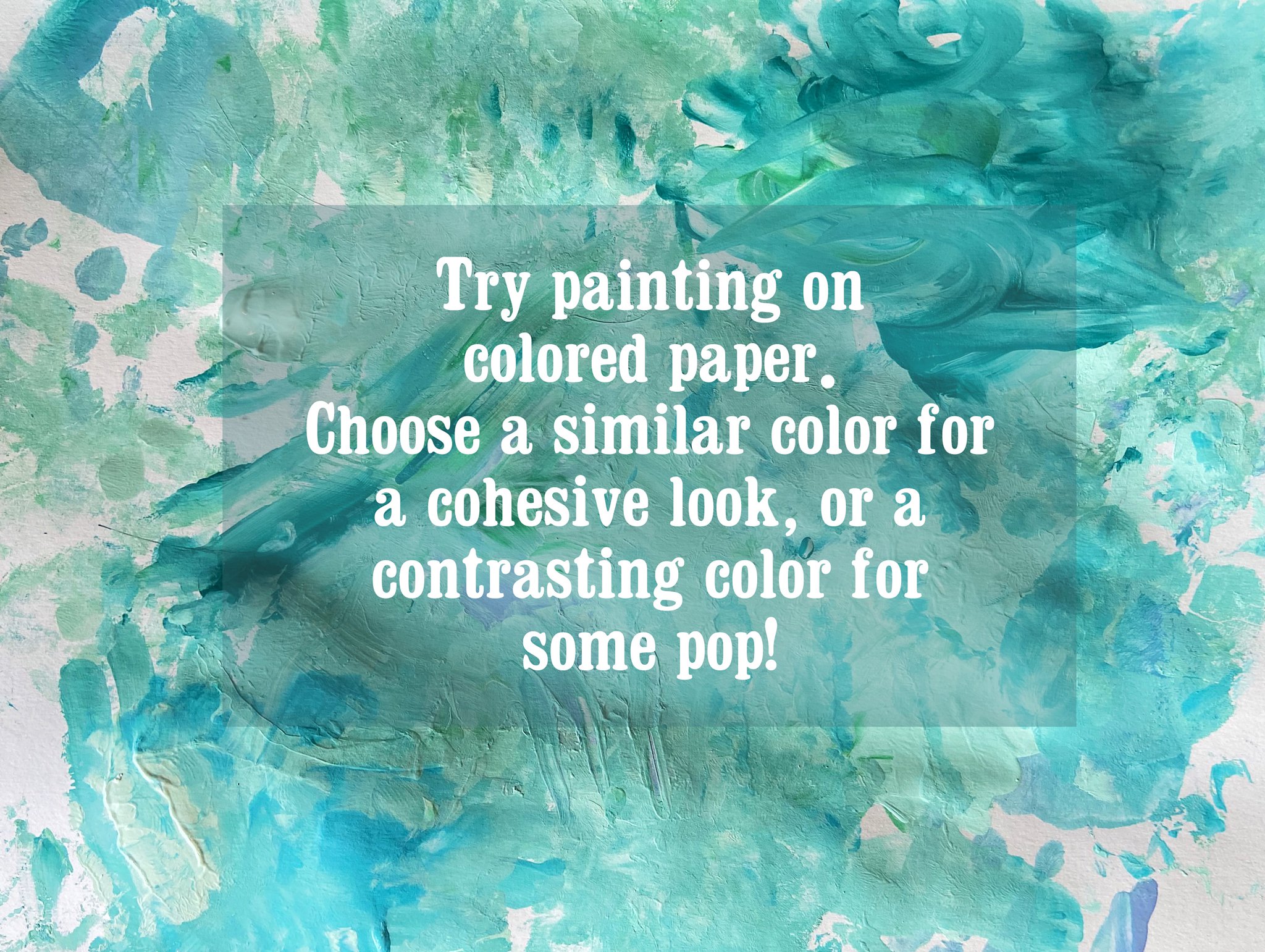 • Cut out an egg-shaped stencil from a piece of scrap paper and use it to cut out egg shapes from the finished paintings. Be intentional when you cut out the eggs and look for areas with interesting color mixtures and textures.