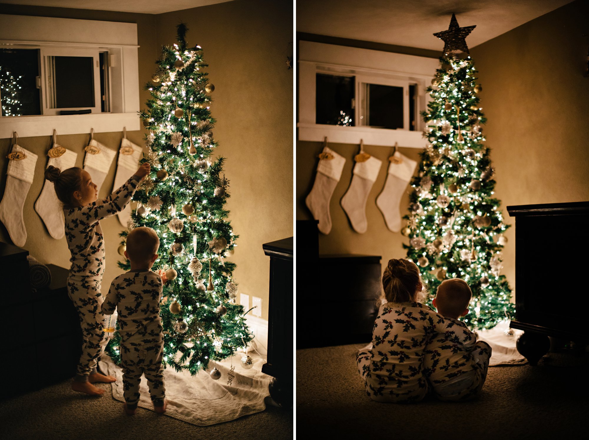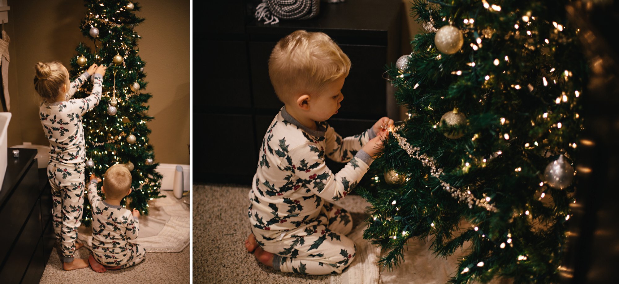 Once we were ready to dive in to all things Christmas, we marked the transition by decorating the tree! We surprised the kiddos with their first set of matching jammies for the season, blasted the Christmas music, and hung the ornaments. It was the perfect night!