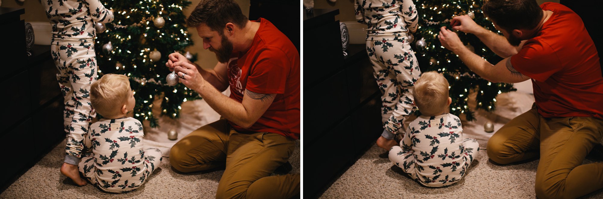 Daddo helping Cole with his ornament hanging skills… not to say there is anything really wrong with just stuffing them into open spaces between the branches.