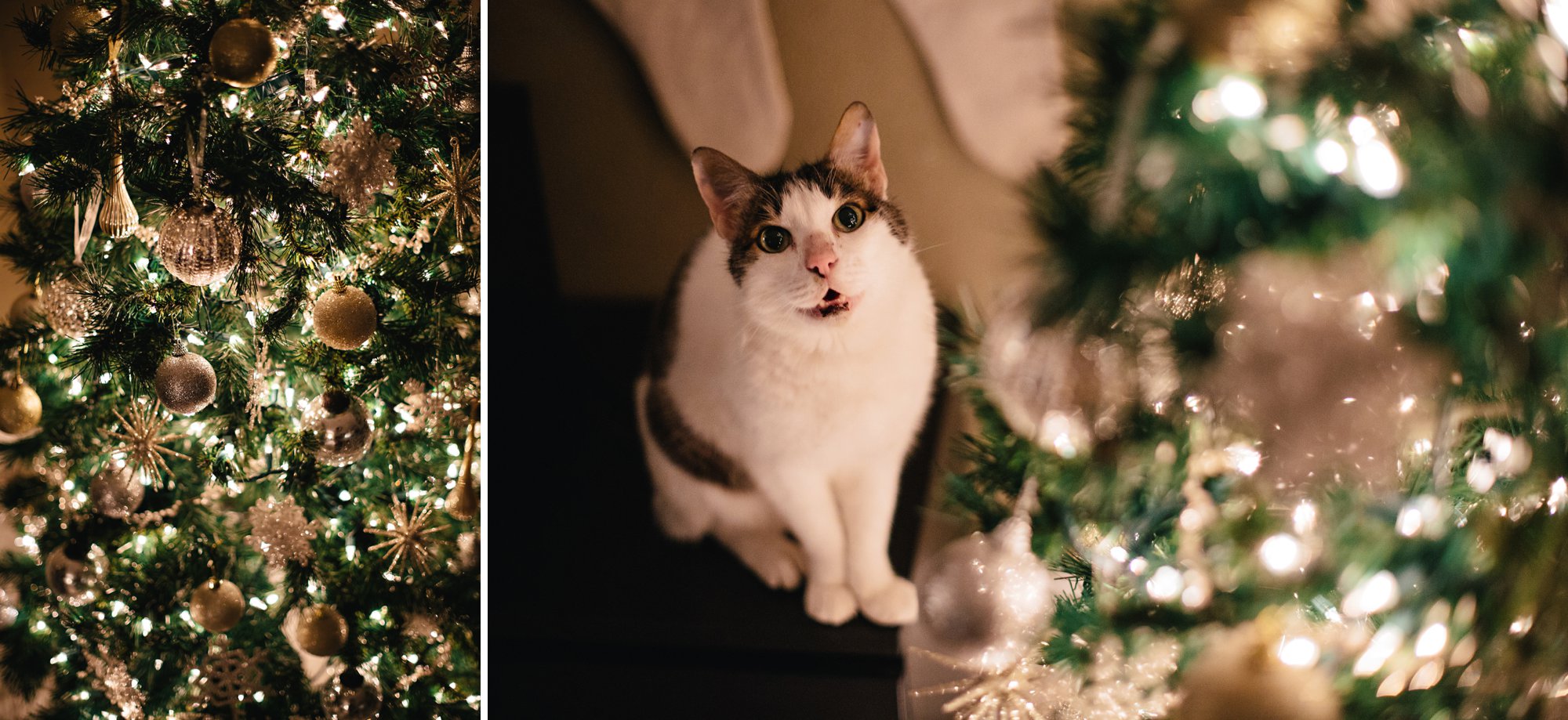 Cole showing “Char-ye Bar-ye” the Christmas tree may now be one of my all time favorite holiday memories. I’m not sure which one of them I’ve had to chase out of the tree more this season! A little spray from the water bottle works effectively for both!