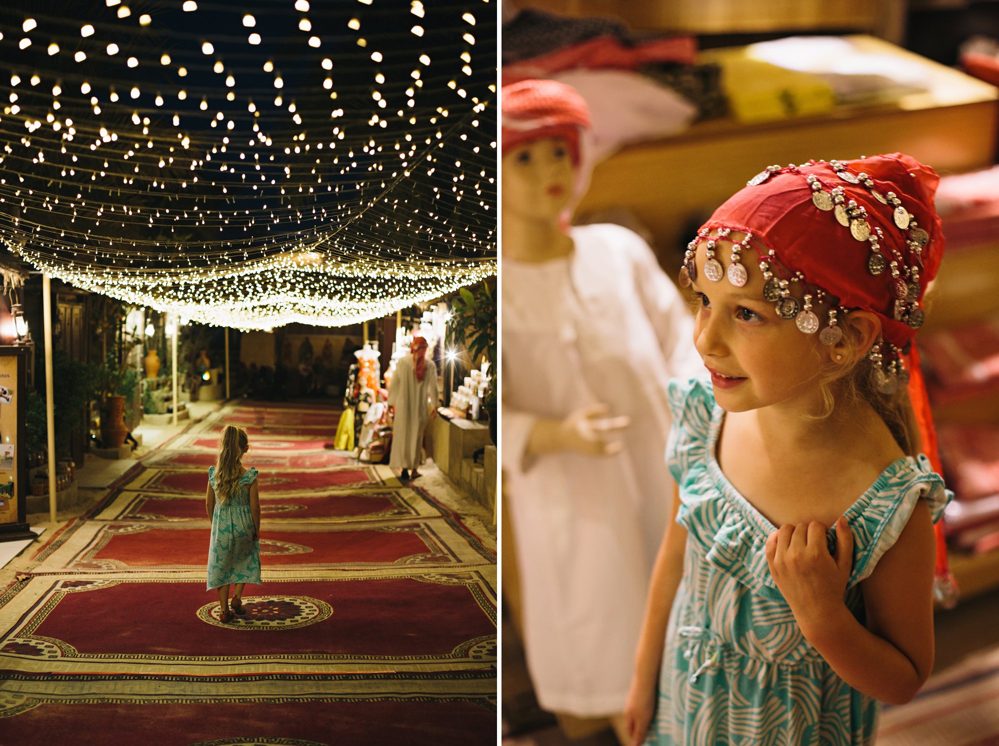 Isla’s Nana gifted her a little spending money to find a special souvenir from our trip. She had searched diligently for weeks, but nothing had interested her enough to part with her money. Then, as we walked past the little shop at the entrance of Al Hadheerah Restaurant she discovered a belly dancing outfit. We explained it would take all her money to buy it, but her heart was set! She wore it proudly all night… and at every opportunity she could during our stay in Dubai. A solid purchase!