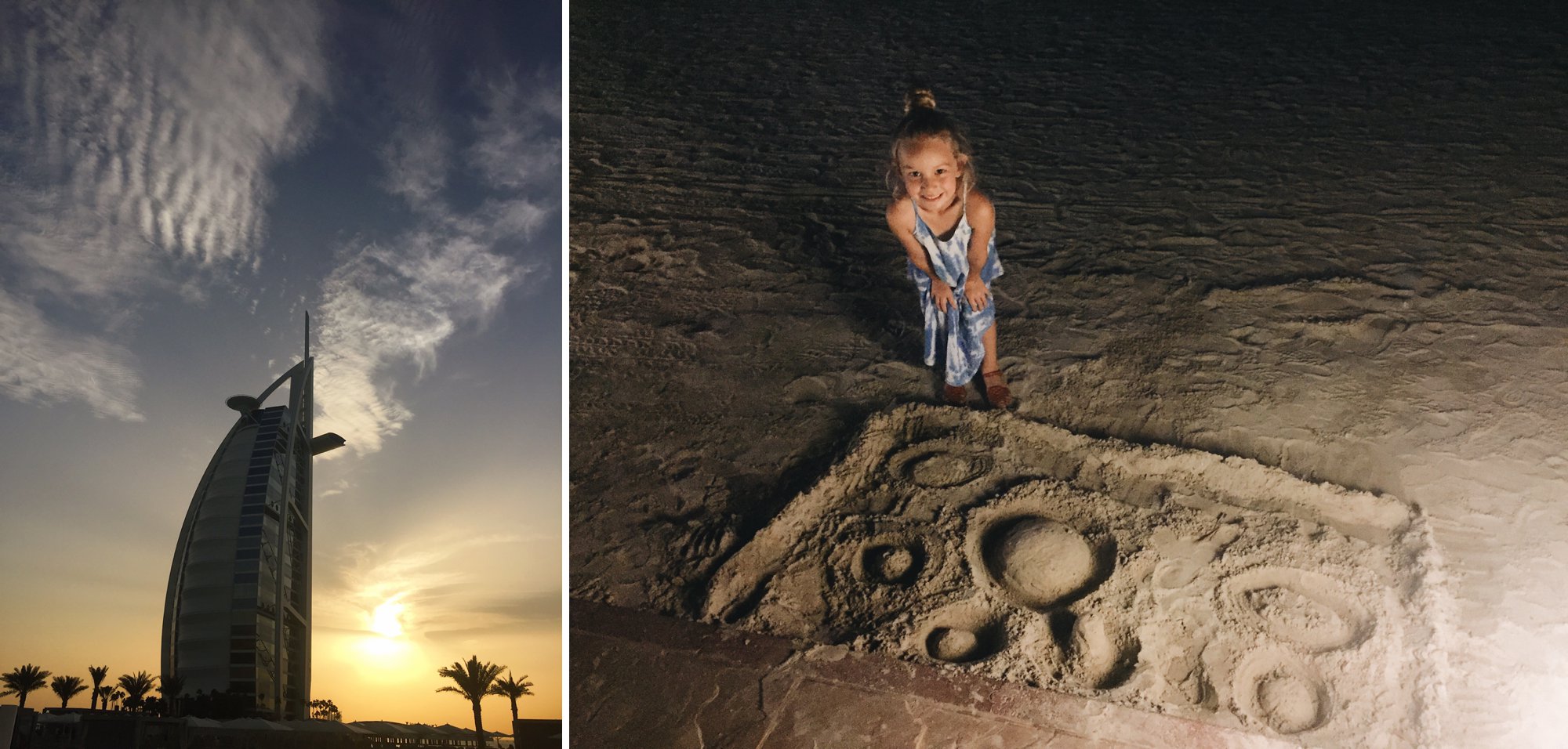 This has been our favorite beach since we lived in Dubai a decade ago. At the rate the city is changing we are always thrilled to find this little bay still exists- though sometimes it takes us a while to find it again! It’s the perfect place to wade around in calm water and walk along the shoreline in search of shells. Whenever we are in Dubai Isla asks, “Are we going to our favorite beach?” We love that she is making so many happy memories here too!