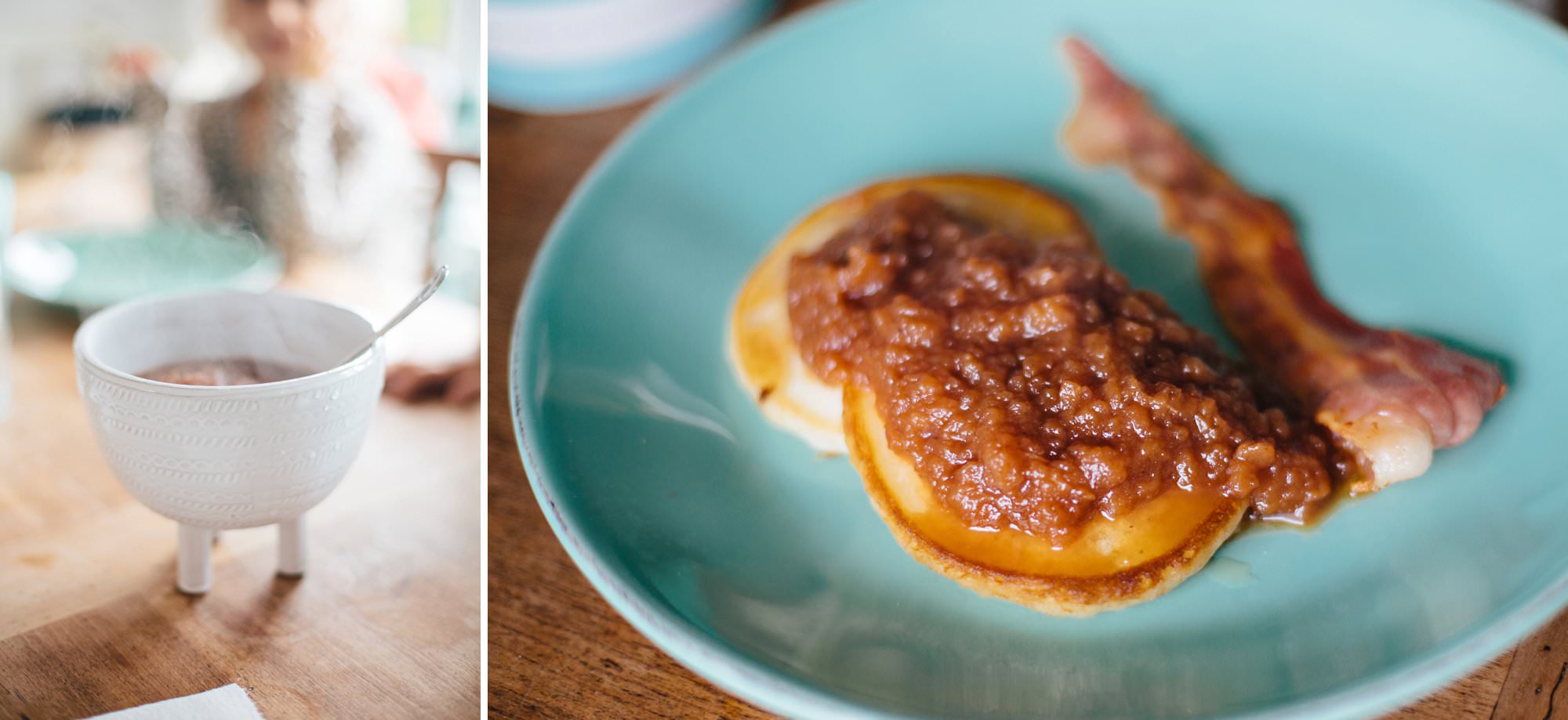 Put all ingredients into a sauce pan over medium-low heat and let it simmer for 2-3 hours, until the mixture thickens and turns a rich amber color. Stir occasionally. Do your best not to eat it all straight from the pan. Serve warm over pancakes or waffles, along with a little drizzle of real maple syrup. There’s no tastier way to welcome the fall!