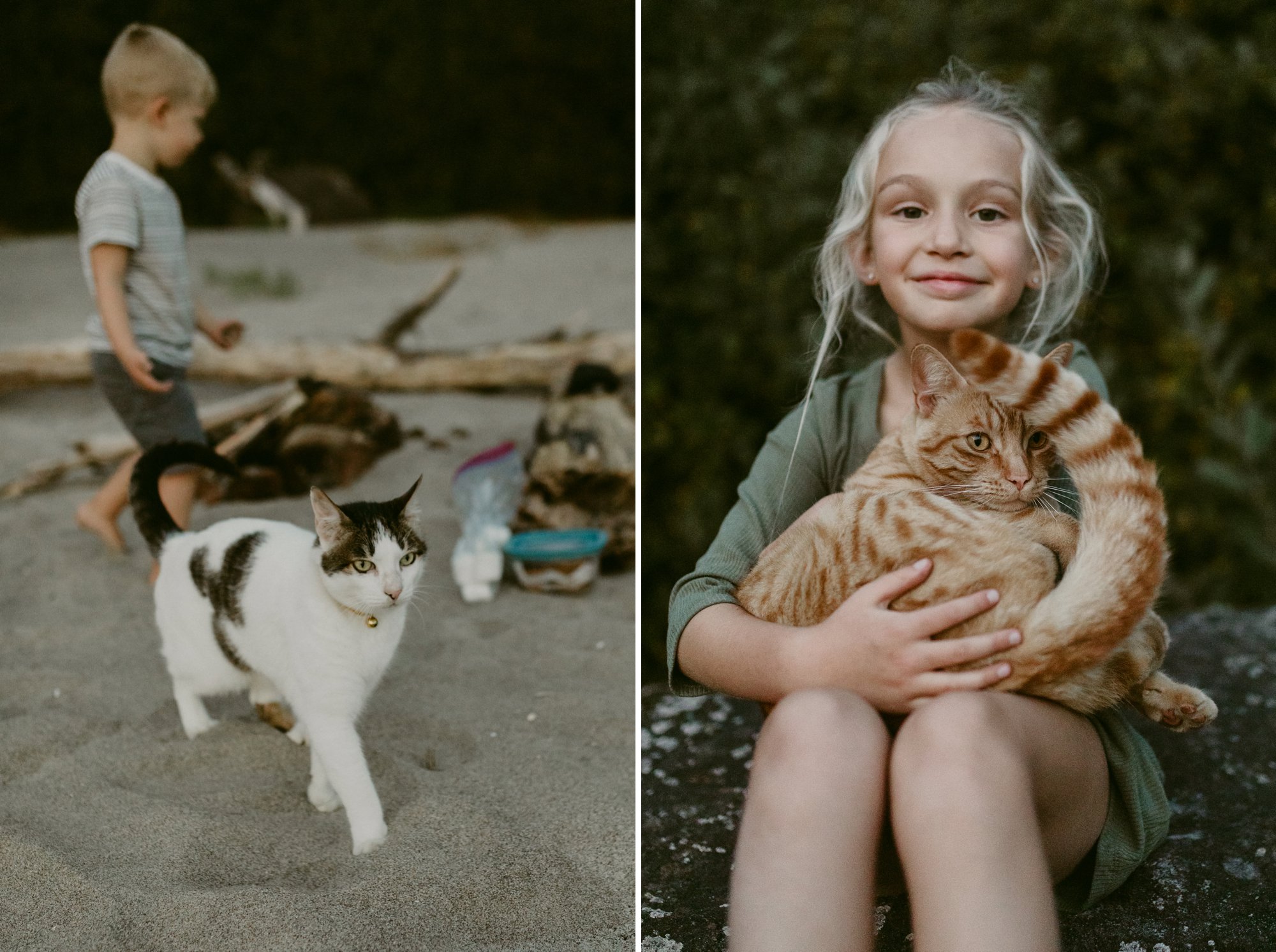 To commemorate this particularly happy stretch in time, we decided to take our family photos before the summer ended and highlight some of our most treasured pastimes from the last few months. It was such a lovely evening, and the perfect way for us to bid farewell to the season. As the sun began to set, we hiked up and over the hill to our favorite lookout spot, and then down onto the beach for a bonfire and, you guessed it, s’mores! As an added bonus, the cats joined us for the entire adventure— even on the sand! We especially treasure these photos of our dear Charlie, as he disappeared just a week later– a further reminder we just do not know what tomorrow will bring, so we must do all we can to make the most of each and every day together.