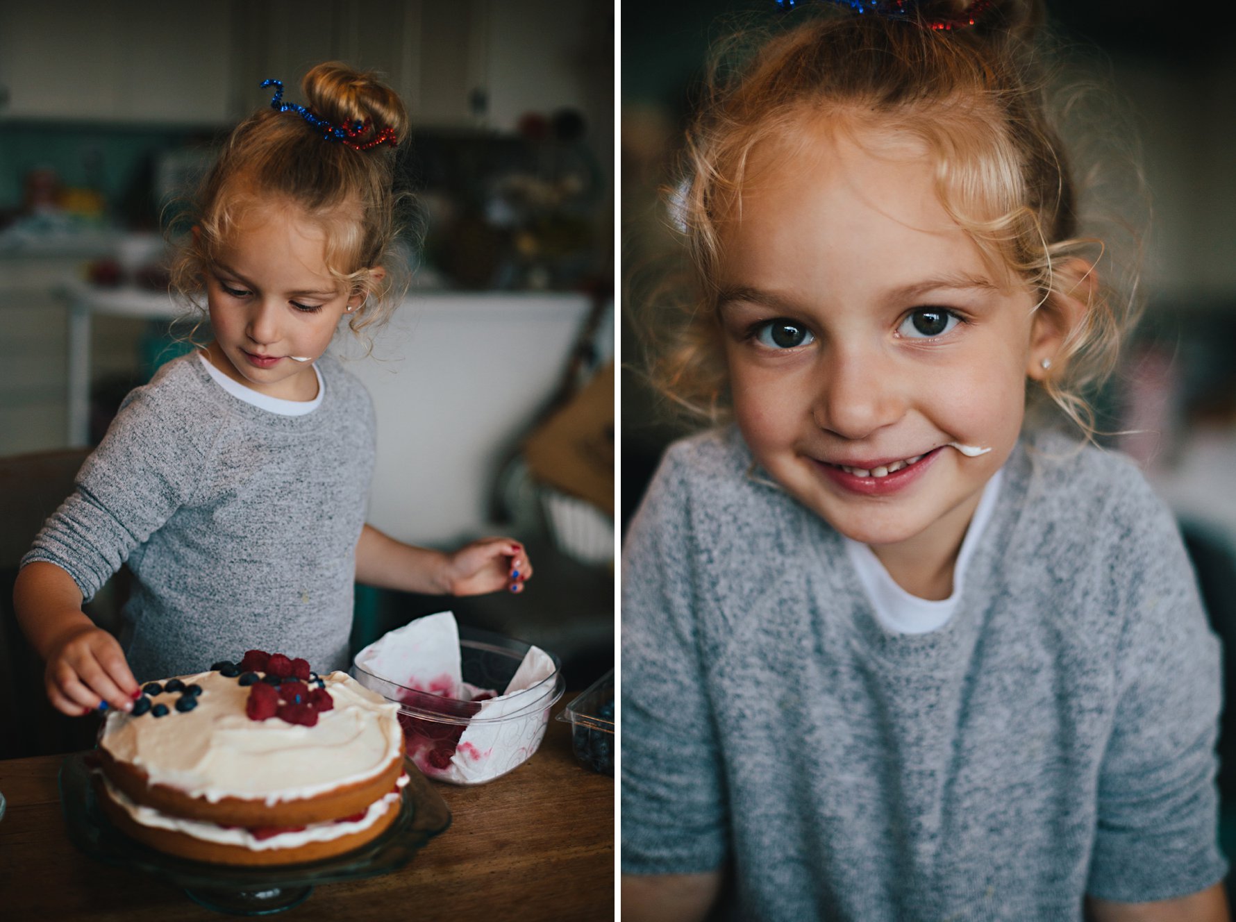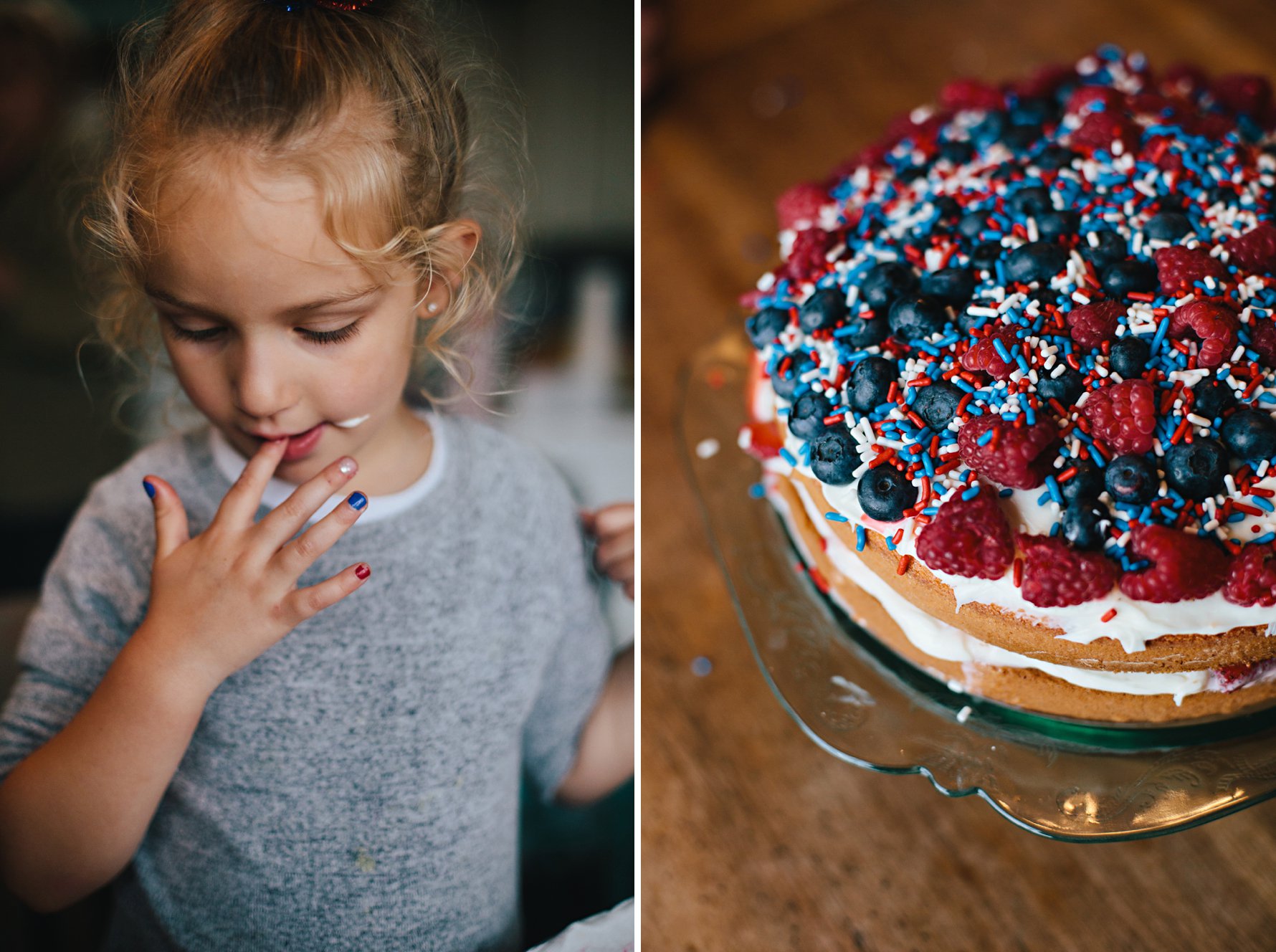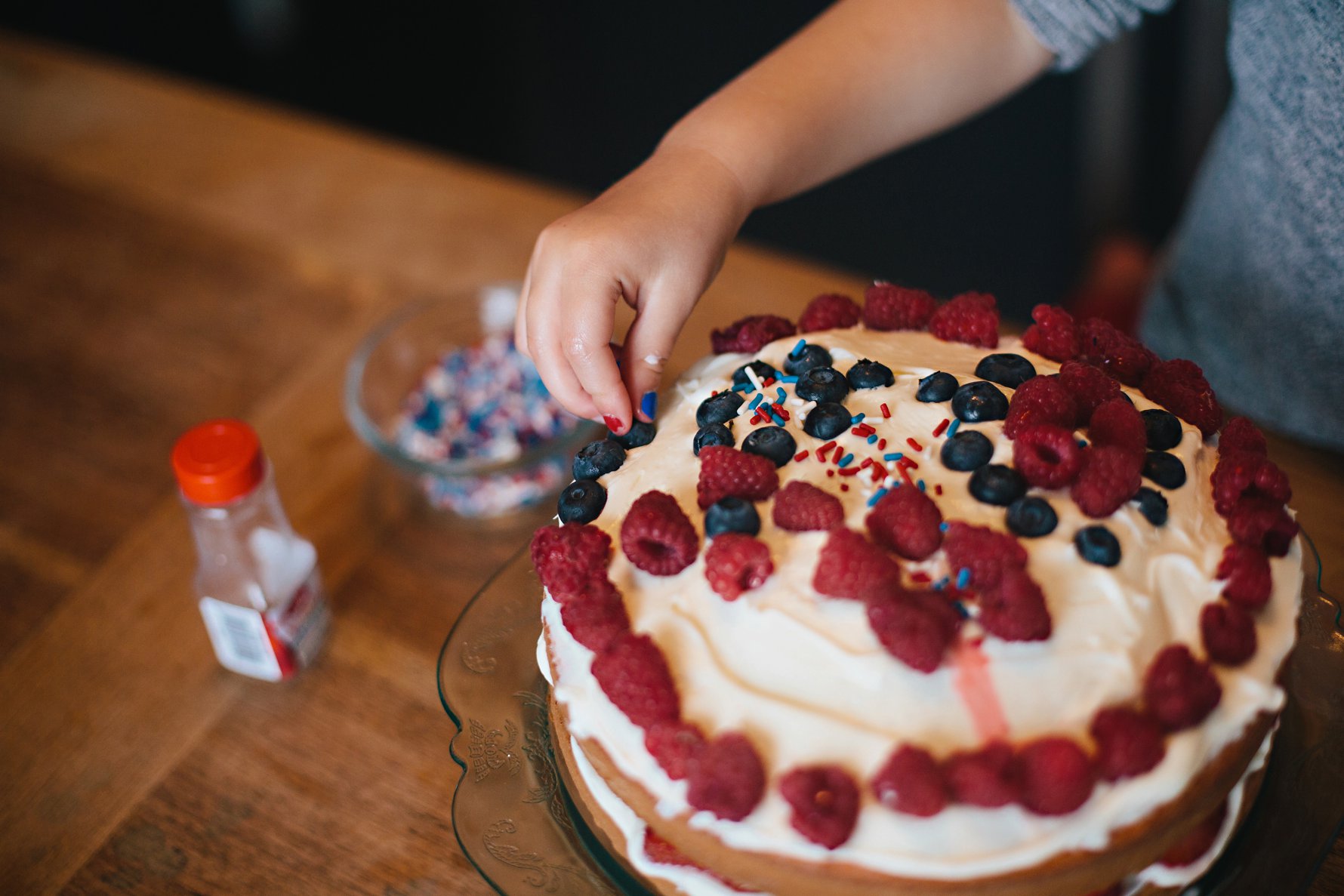 Isla and Nana made a strawberry cake for our 4th of July BBQ, and then Isla decorated it with berries and a whole bottle of sprinkles! She kept sneaking little tastes of the frosting as she worked. A girl after my own heart!