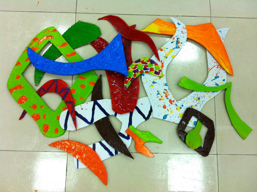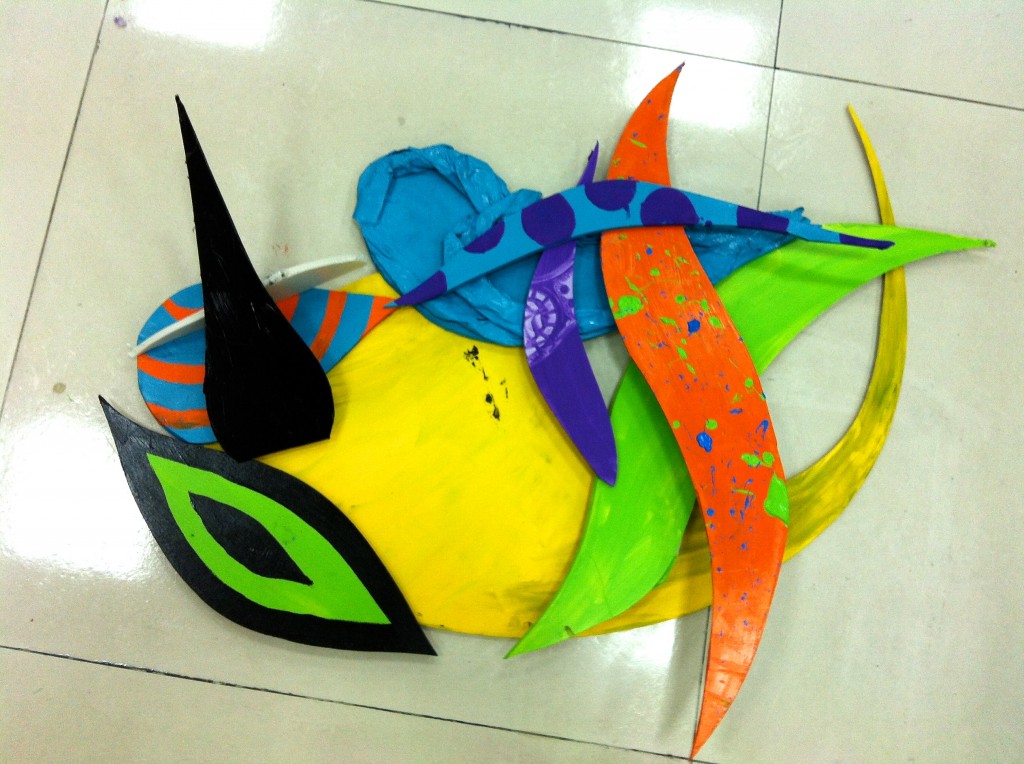 In middle school art, we finished off the 2011-2012 school year with what turned out to be one of my favorite projects I’ve ever done with my students. We learned about the whimsical and dynamic work of Frank Stella and created assemblages inspired by the actions, movements, and energy of a sporting event. It was wonderful to see the many different sports represented, and their artistic interpretations expressed.