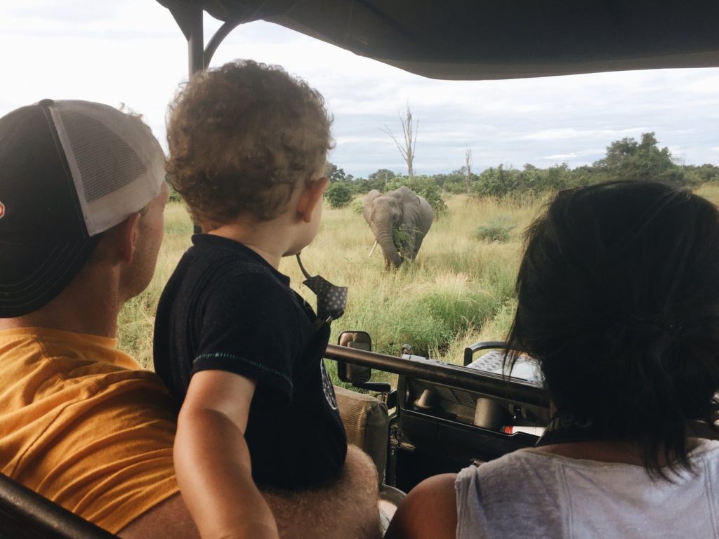 Over the next few days we enjoyed morning and afternoon/evening game drives. When we planned this trip we honestly weren’t sure how well Cole would handle the game drives. Hours of sitting in one vehicle, rutted roads jostling us around, needing to keep quiet… thankfully, Cole was absolutely fantastic! Not only was he happy on the long, bumpy rides, he was totally engaged whenever we came across any animals. Within two drives he was properly identifying (and greeting) elephants, impalas, zebras, and baboons- though he sometimes got confused and called the baboons “kitty” when they walked around on all fours!