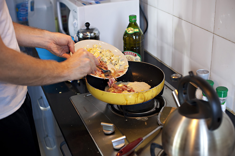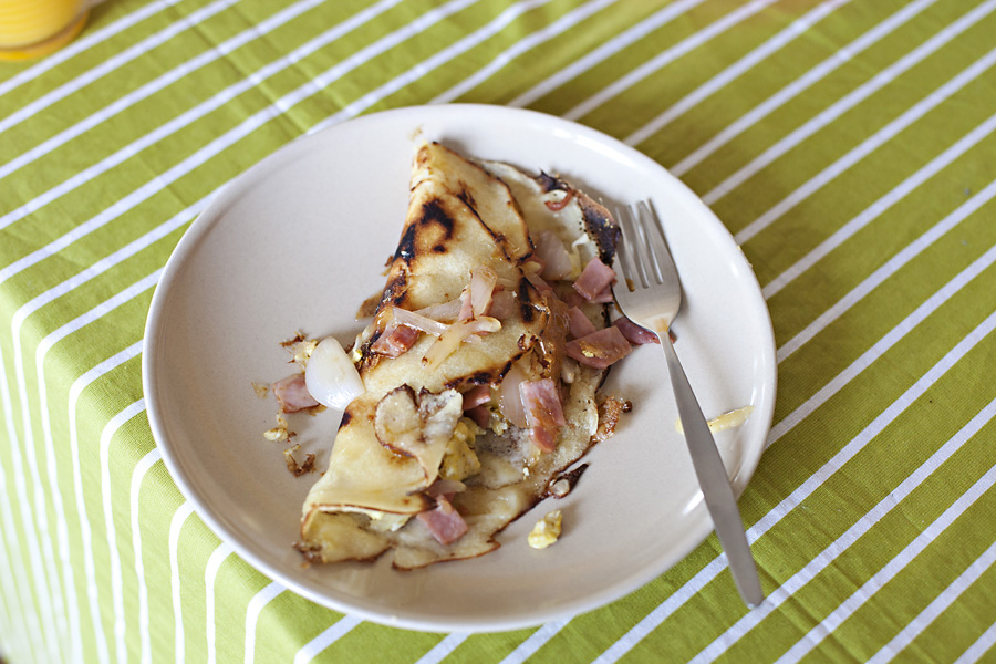 Isaac paused to make one of his delicious, on the fly crepe concoctions for brunch… yum!