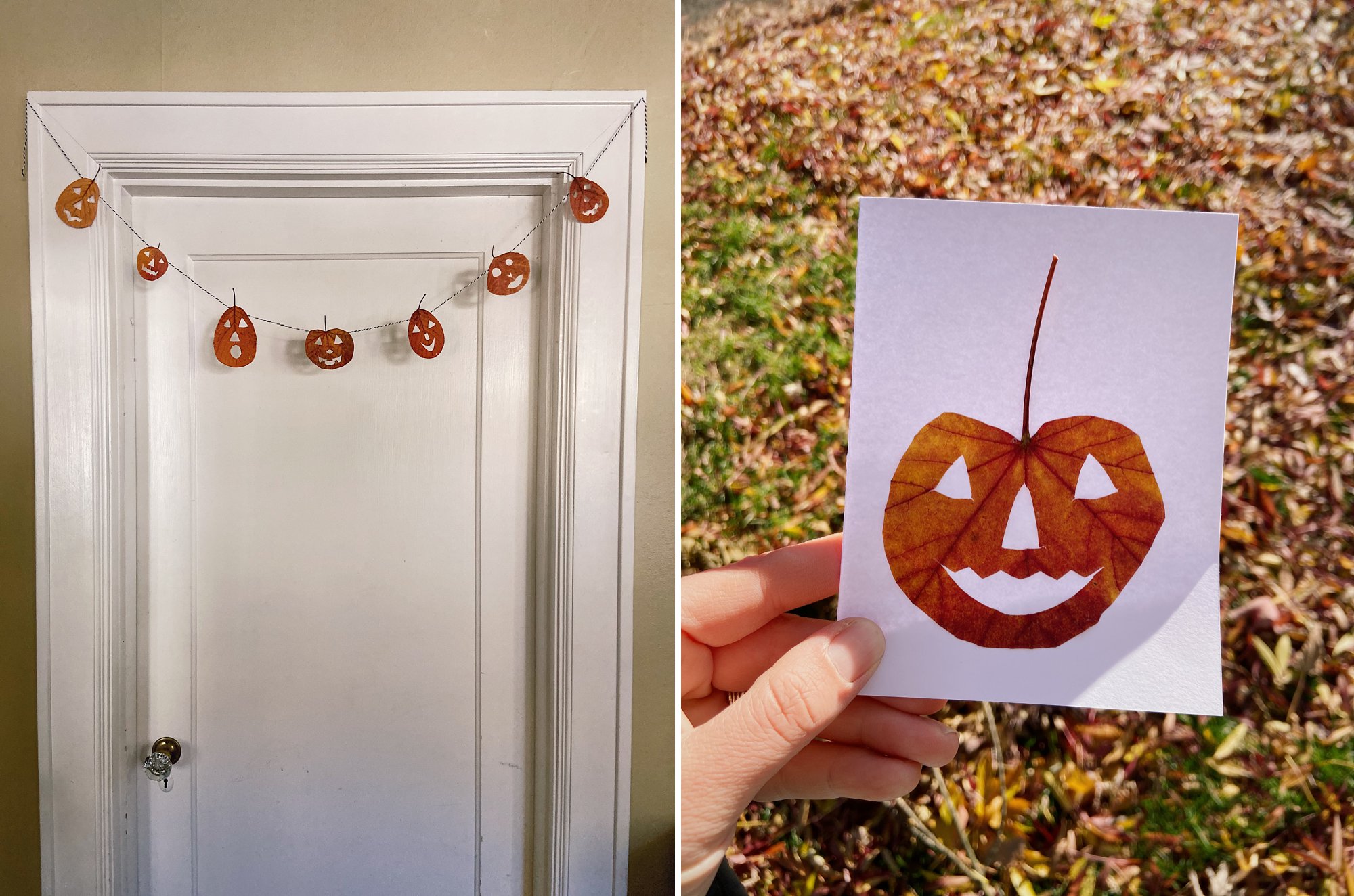 You can display your leaf jack-o-lanterns as they are or use them in a craft! Here are a few ideas: