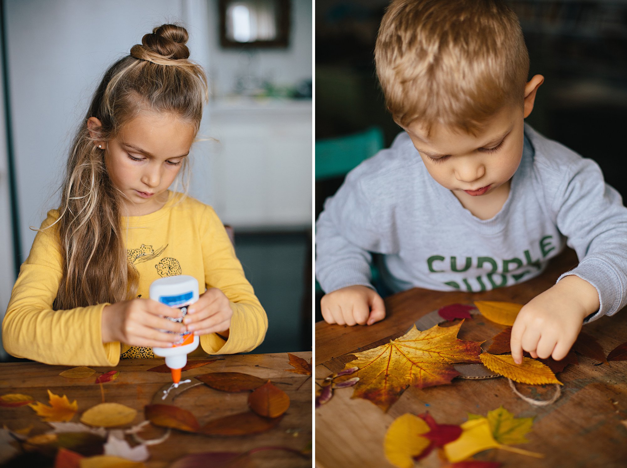 We collected bags full of colorful leaves, and pressed them as soon as we returned from our walk. About a week later we used our favorites to create beautiful wreaths! Each of the kiddos made their own, and then Isla and I made one together while Cole napped. I just love sneaking in a little quiet mother-daughter crafting time with her!