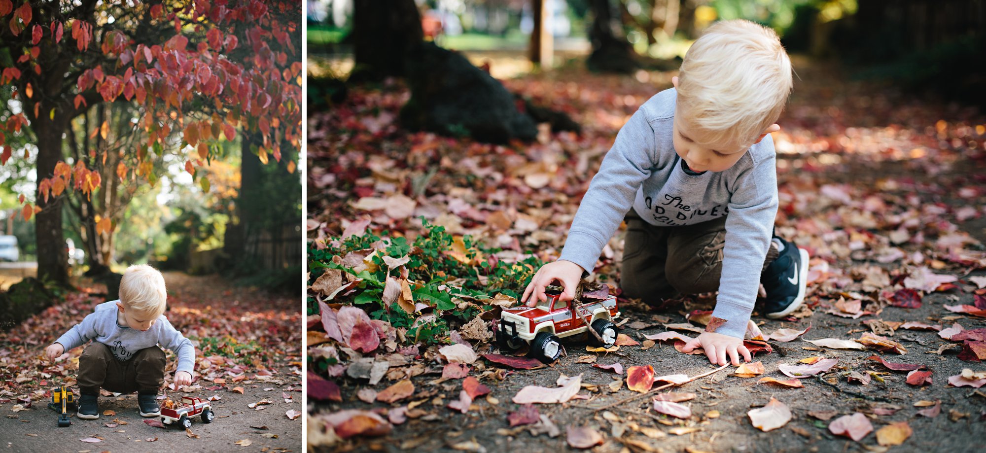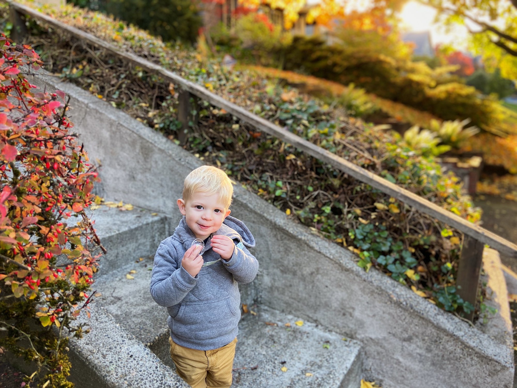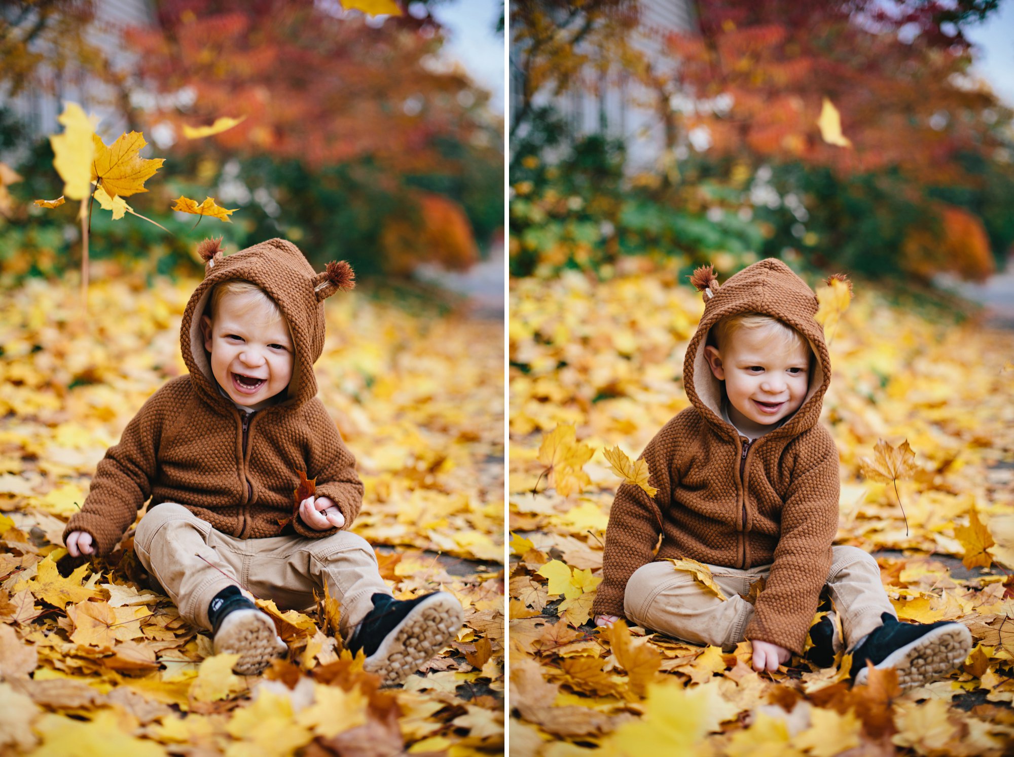 Now the rains have come and soaked the ground. The crisp crunch of leaves underfoot is now soft and spongy. Our neighborhood leaf pick up is scheduled for this morning and it’s going to look a lot less colorful around here, so we thought we’d reflect, with gratitude, on all the happy fall walks we enjoyed together this year!