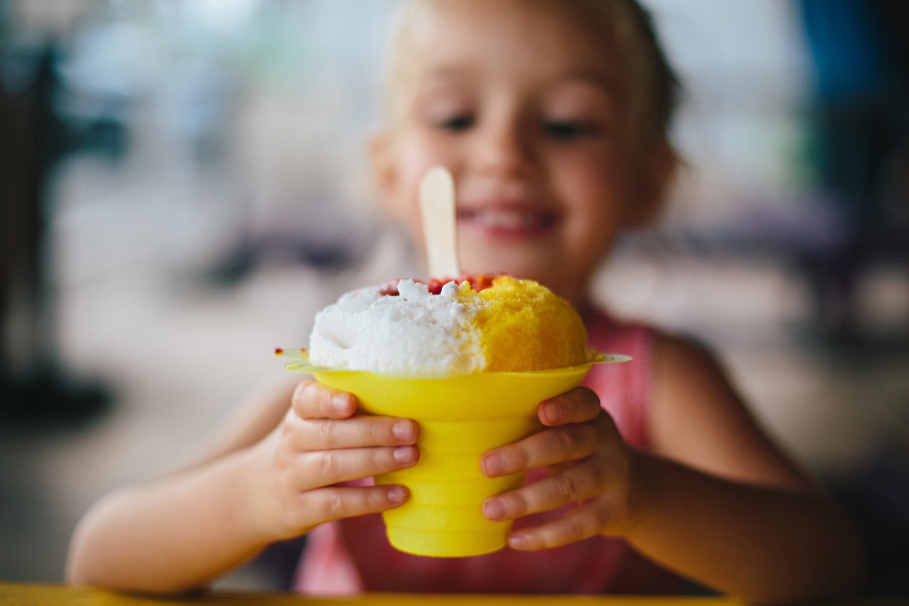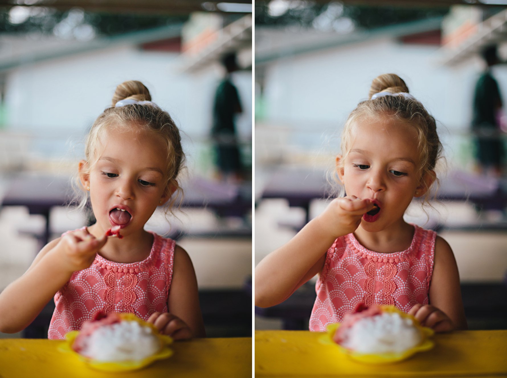 One of the shave ice makers gave Isla an ice ball and she wasted no time surprising Papa with it!