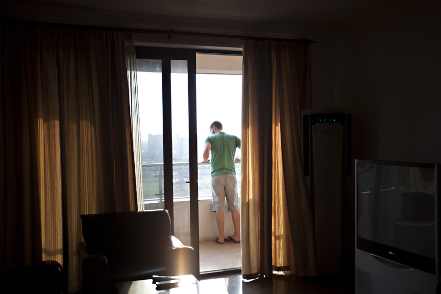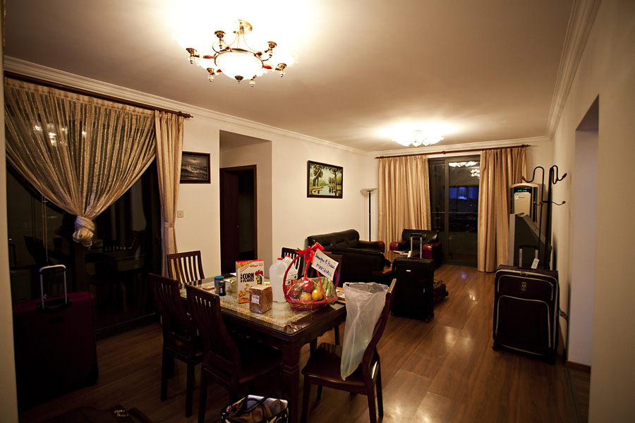 The air was hot and sticky as we unloaded our bags, and a smell of spoiled produce hung lightly in the building’s foyer. It wasn’t a terrible stench by any means… just that familiar regional smell that we have come to know exists in little pockets here and there from our travels through SE Asia. Our apartment is on the 14th floor. We eagerly explored every nook and cranny of the space. There are certainly many positives about our new home- it is a good size, feels open, and has lovely views. A few downsides exist- ugly furniture, a tiny washer, and the cramped blue kitchen. Our minds have been reeling almost non-stop, however, and we are certain we’ll have this place looking beautiful and cozy in no time! It will be a fun challenge!