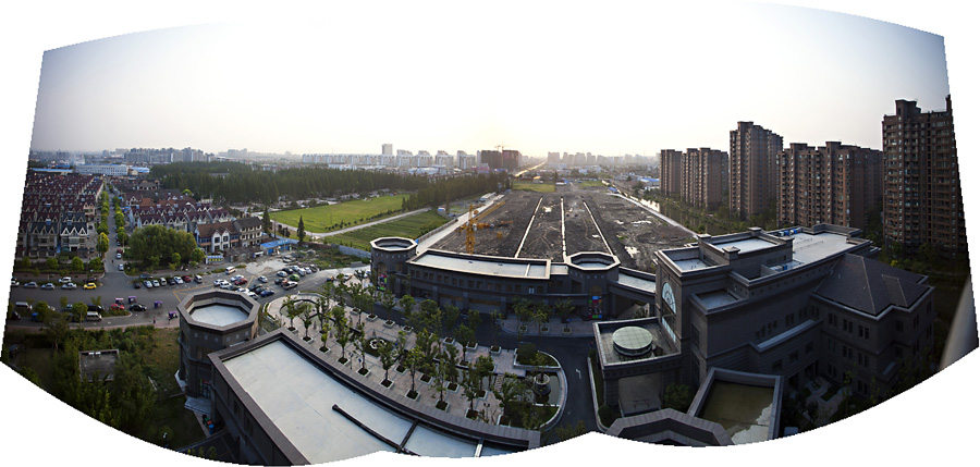 I was tinkering with the panoramic option on photoshop. Not the most brilliant photo, but it shows you the view from our living room balcony….
