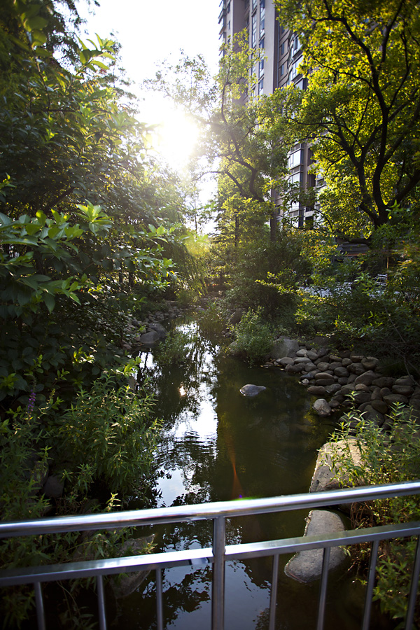 I was relieved to see people out walking their dogs within seconds of stepping outside! I have been such a nervous wreck thinking about bringing our furry kiddos here, so I was thrilled to see how many people have pets. I was also surprised by how many people were already outside- walking, stretching, watering plants, and exercising. Our neighborhood is fairly quiet, but it is buzzing with energy. People are out and about all the time. We have yet to see any expats other than our coworkers in our neighborhood, so this will be a real immersion experience! The familiar clang of construction and demolition echoes through the air, but it is much less noticeable than in Dubai. The only really loud sound we heard in the morning were the cicadas! I absolutely love walking along and hearing the slow mounting chattering, that rises and falls several times, before erupting into dizzying mountain of buzzing! We walked around in the balmy air, enjoying the lush greenery, ponds, waterways, and little paths that all mingled together between the towering apartments… I can only imagine how lovely it will be to walk when its not so blazing hot and humid!