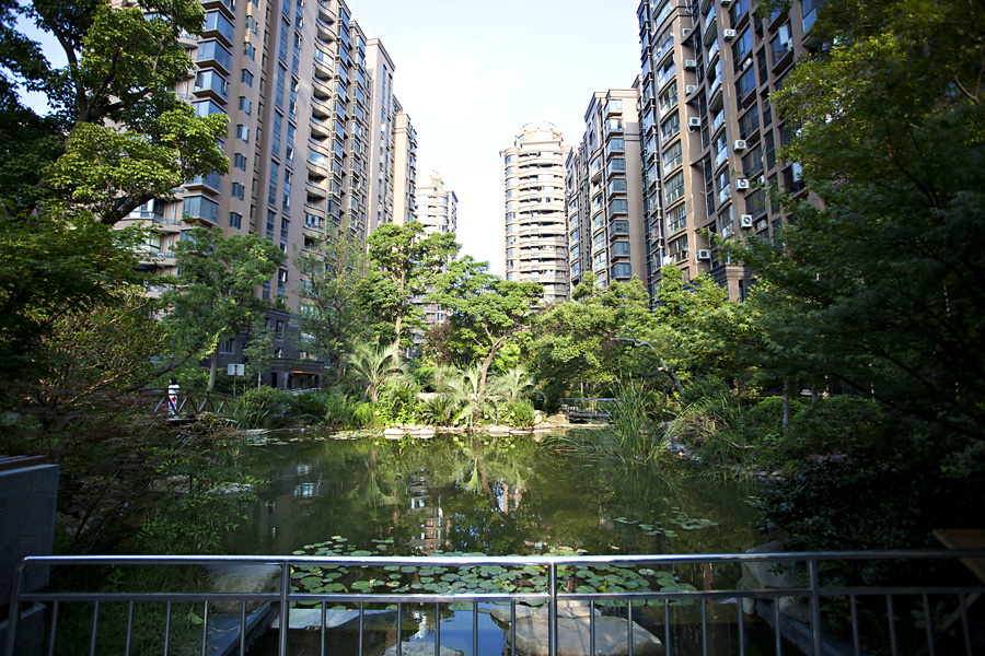 On our first full day in Pudong, we awoke to brilliant sunlight streaming through our windows at around 5:30. We spent time looking at the surrounding views from our balconies before heading downstairs to check out the neighborhood.