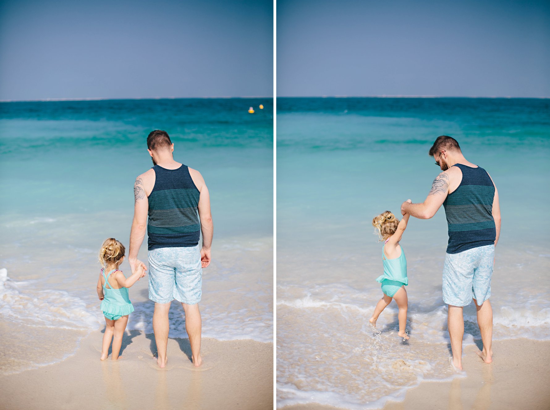 Isla made dear some friends, like sweet Payton. Payton and her wonderful family hosted us during our stay. It was pretty much love at first sight for these two girls. They played so perfectly together, and Isla is still talking about her Payton every day.Isla and her favorite building, the Burj Al Arab.