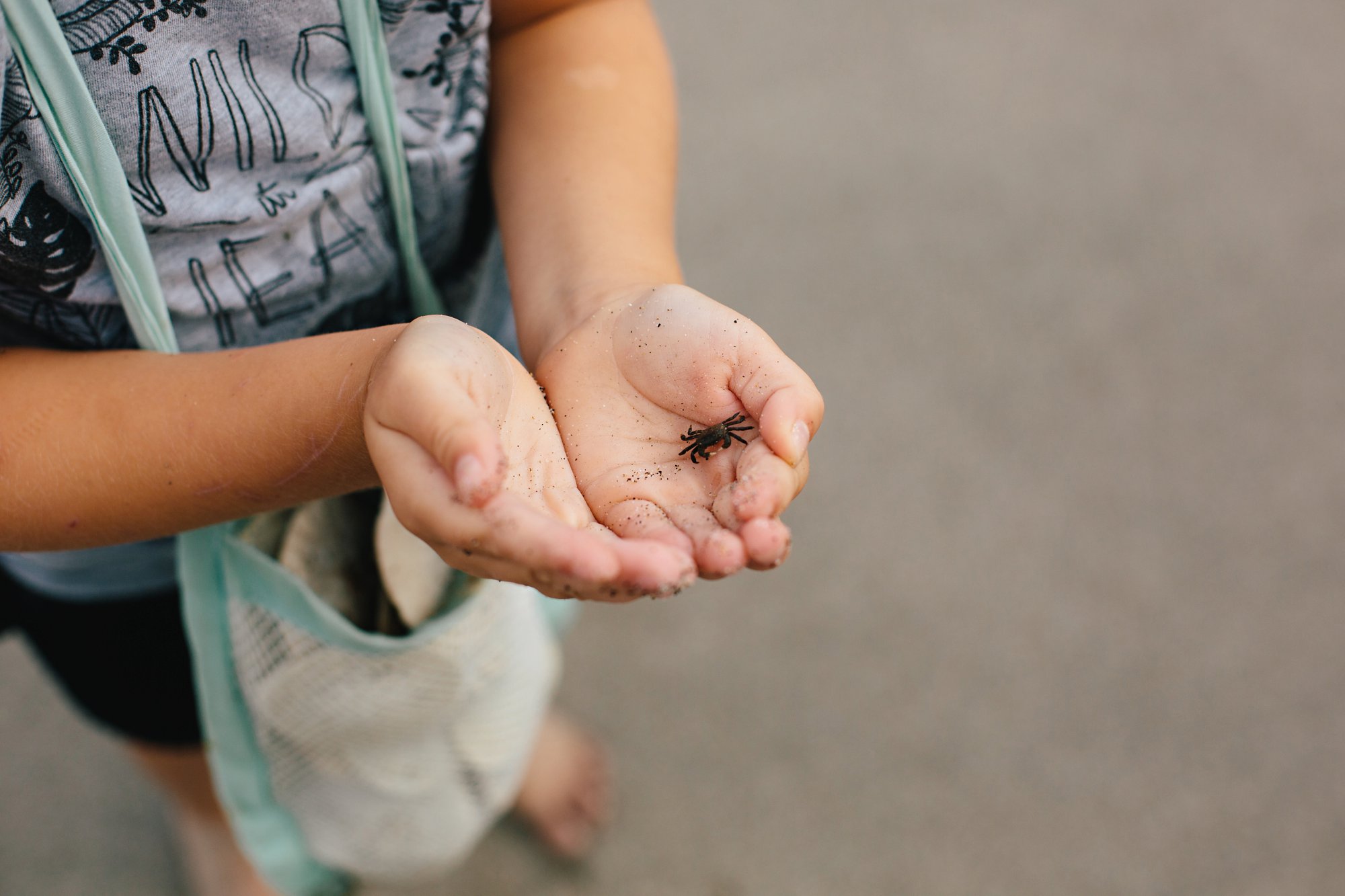 The tides were so low that the “secret beach” around the headland of the estuary was accessible. So much sand had built up that we were actually able to walk way up along the river. As we explored this usually unreachable area we discovered tiny shore crabs everywhere!