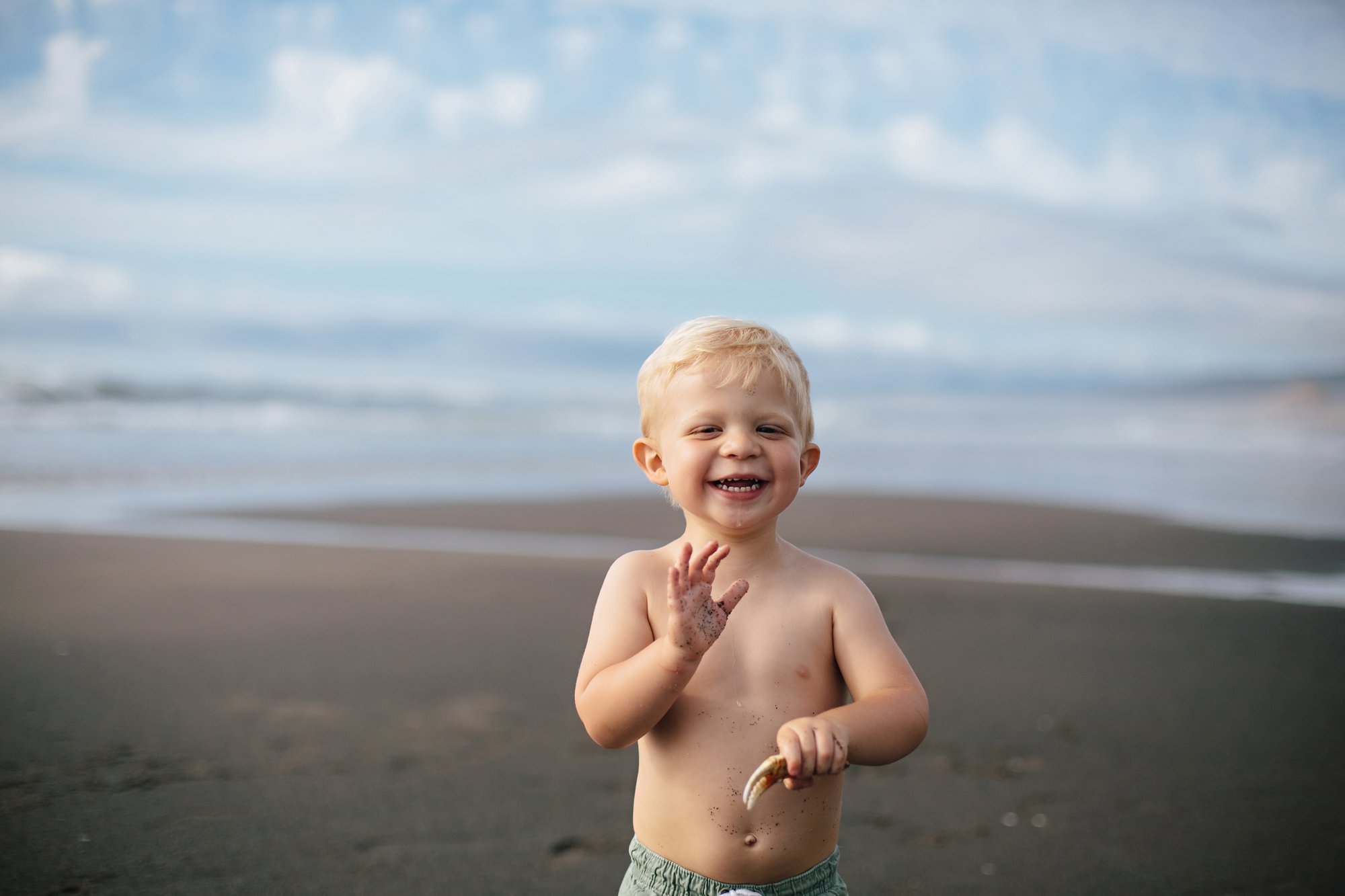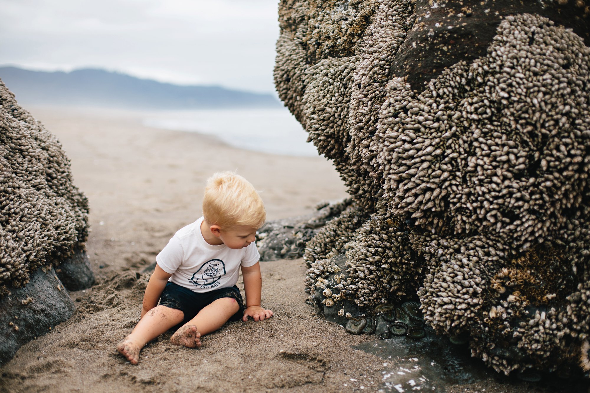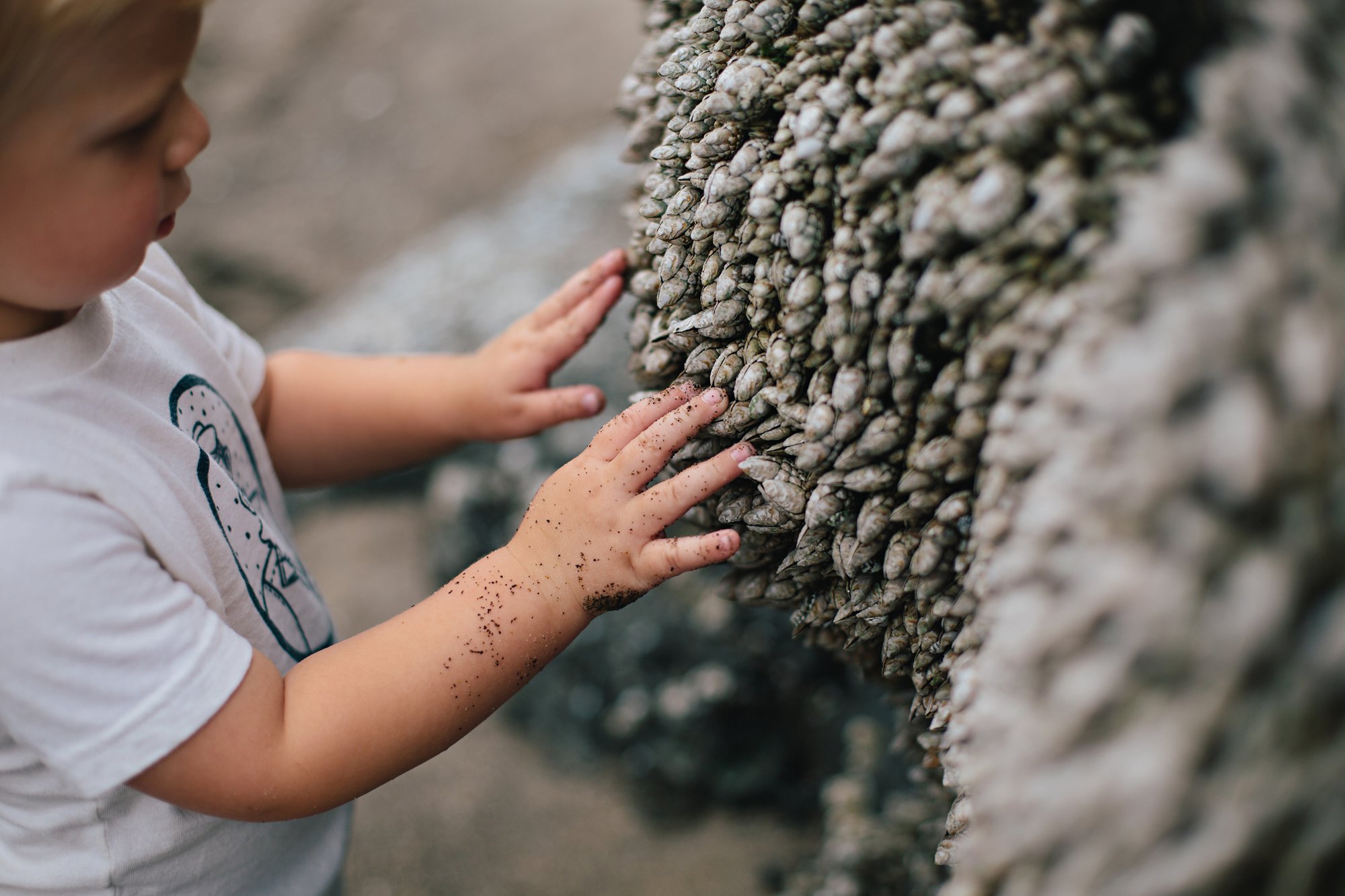 Cole has developed a fascination with barnacles, just like Isla. He now asks, “Go see de barnacles?” Then he shakes his head yes and responds to himself, “Sure!”