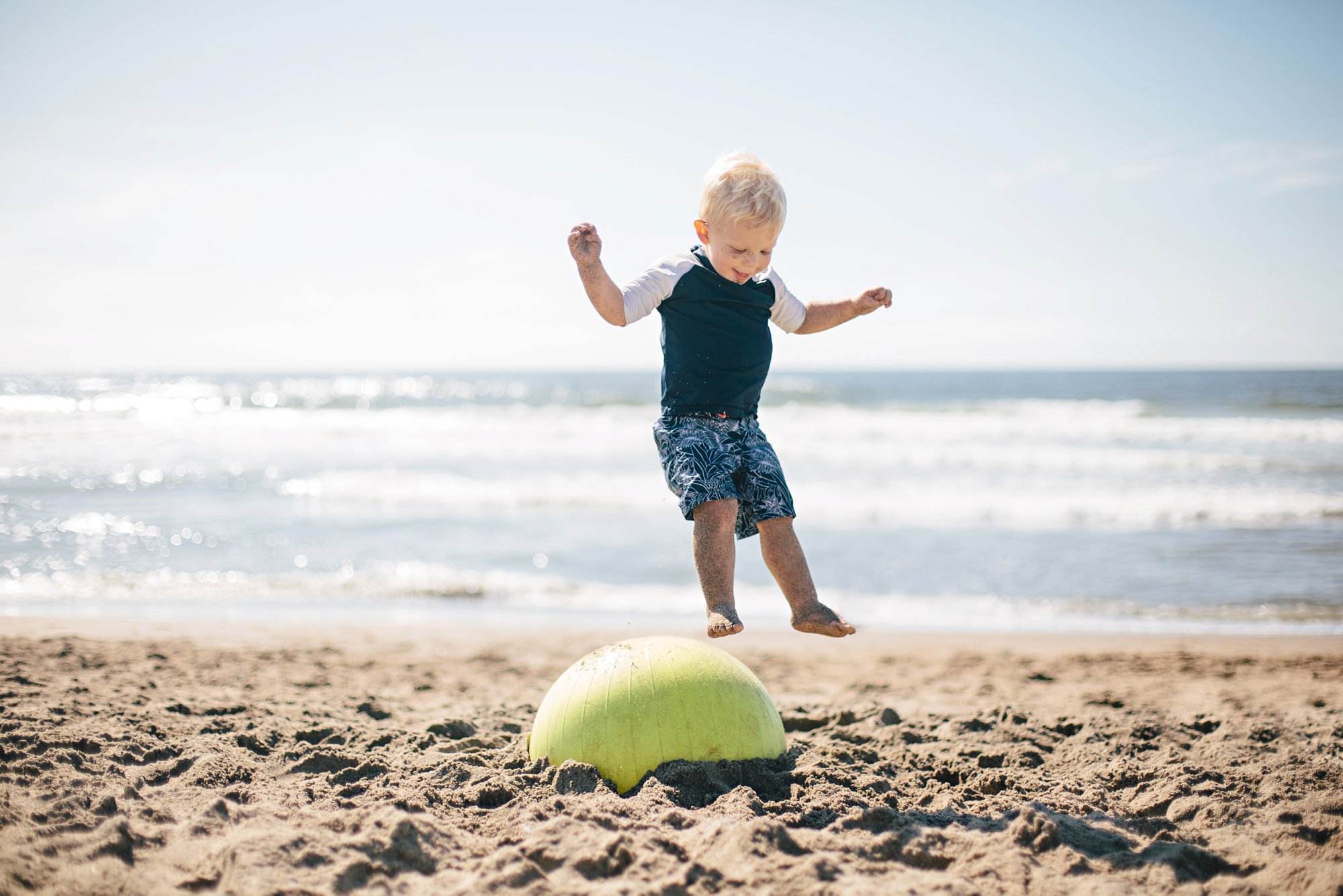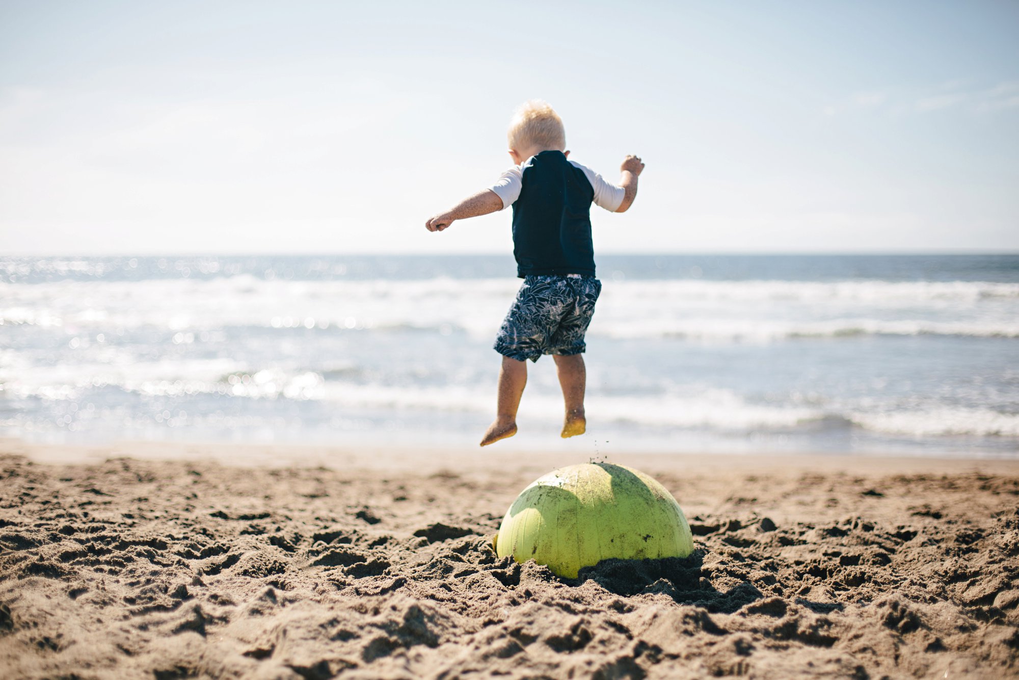 Who knew that a yoga ball could be such a great beach toy?! Jamie and Aaron shared this fabulous tip with us. Dig a hole in the sand so that 3/4 of the ball is buried. Pack the sand tightly around the ball and it becomes a trampoline for the kids!
