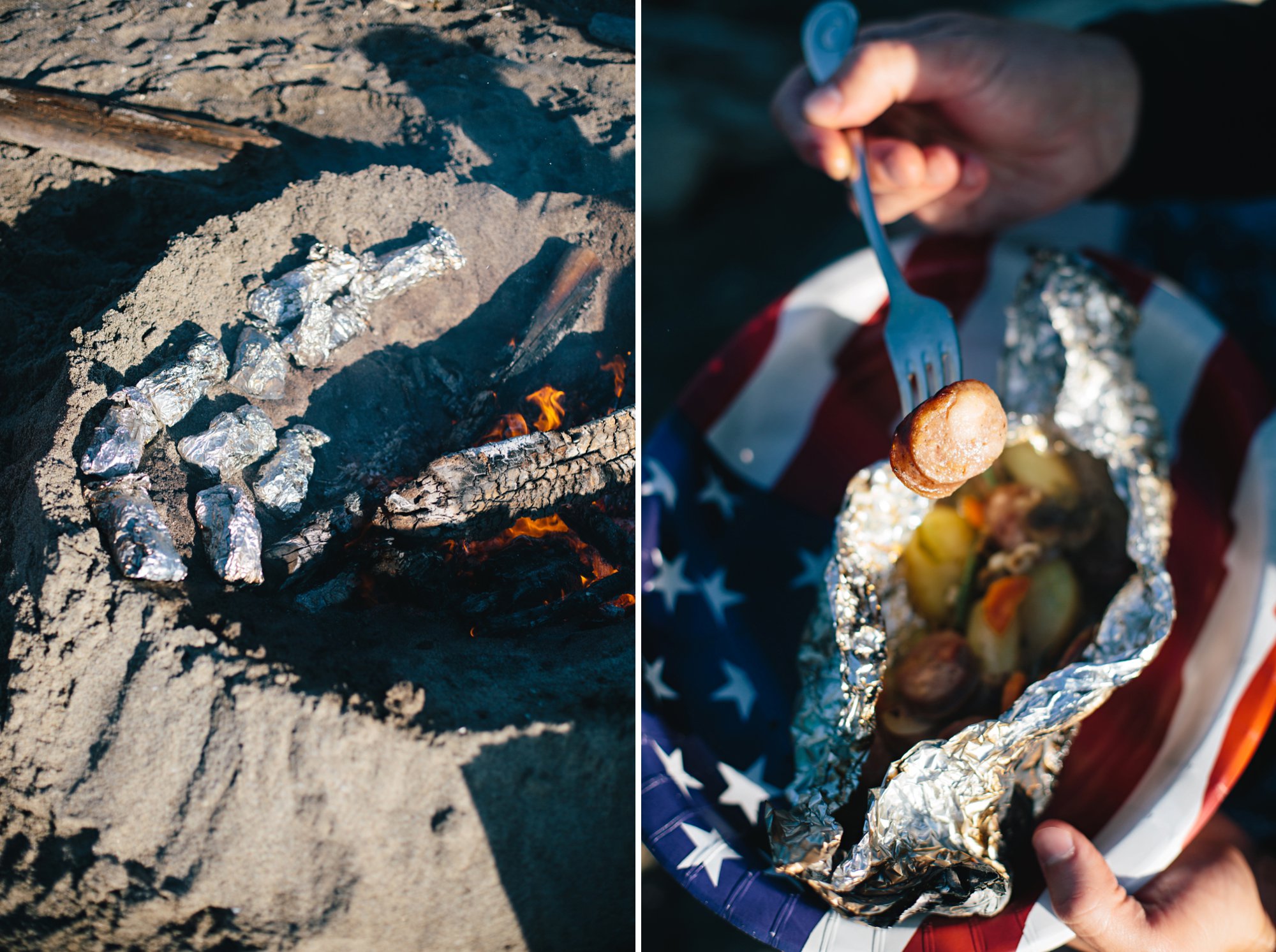 Nothing wraps up an afternoon on the beach like tin foil campfire dinners and s’mores before bed time. Summer perfection.