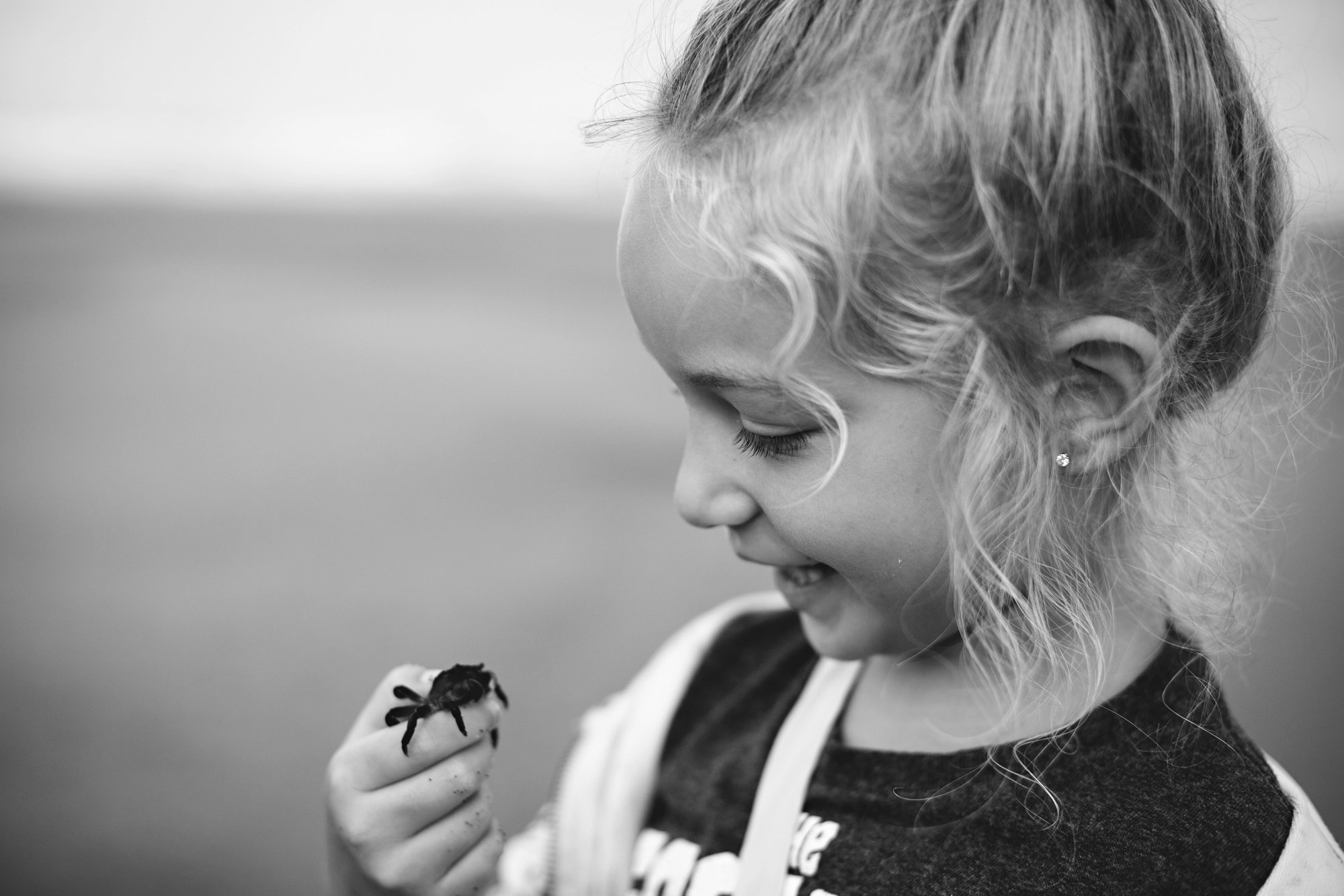 While exploring near the river Isla caught this little shrimp. It flipped out of her hand and landed on the sweatshirt tied around her waist. She was absolutely delighted that this little friend hung out with her for a few minutes.