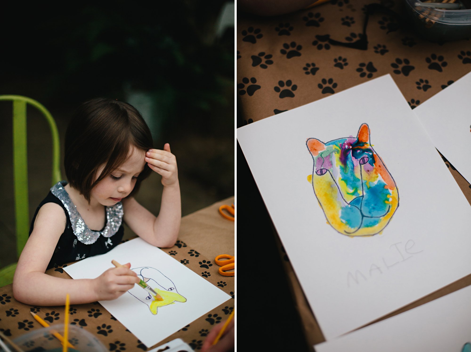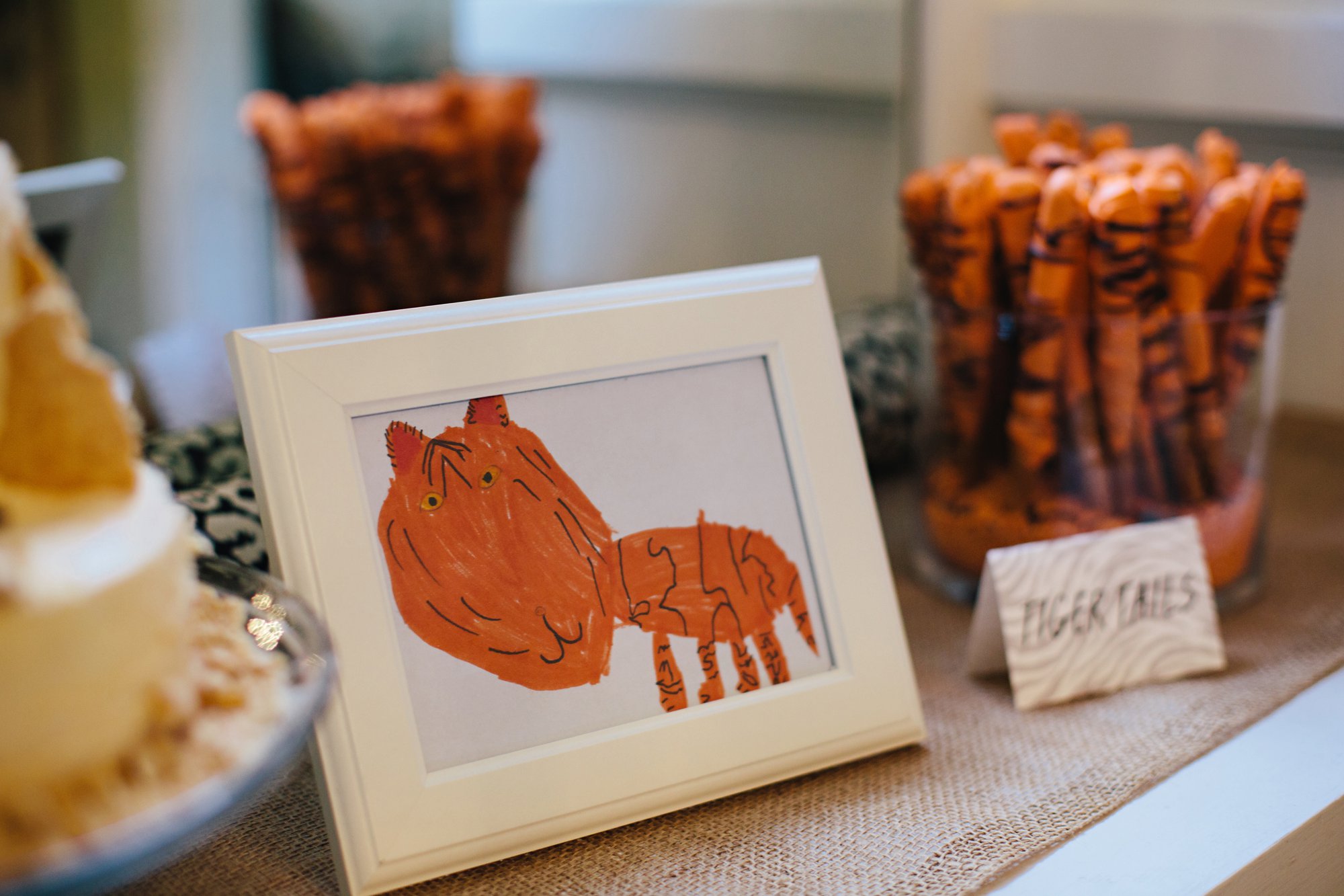 Homemade decorations. We framed and displayed some of Isla’s big cat drawings and used them to decorate the food and dessert tables. Isaac made all of the signage and we printed it at home.