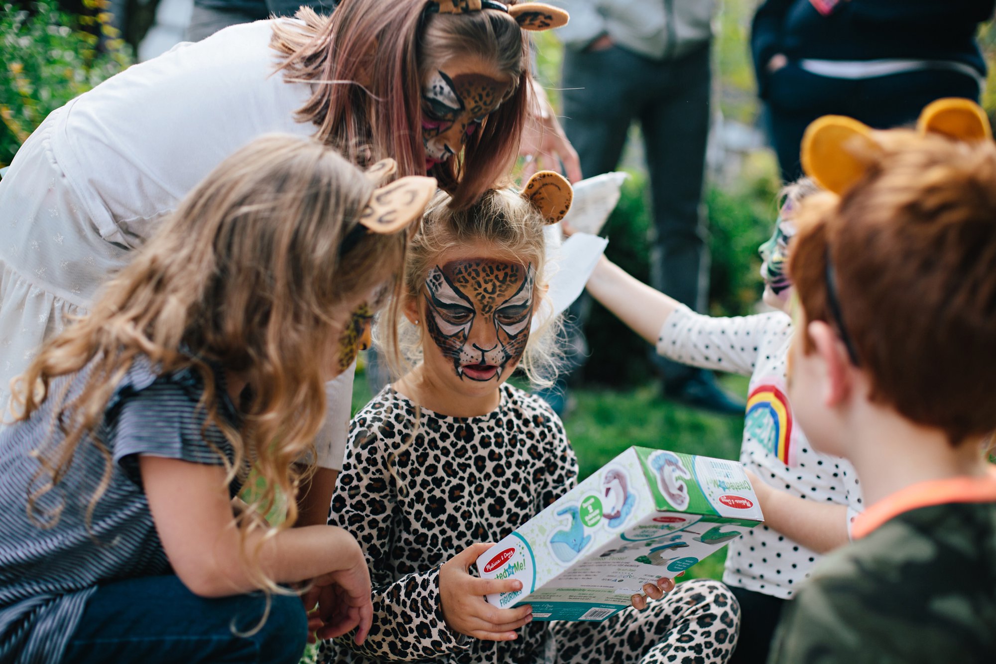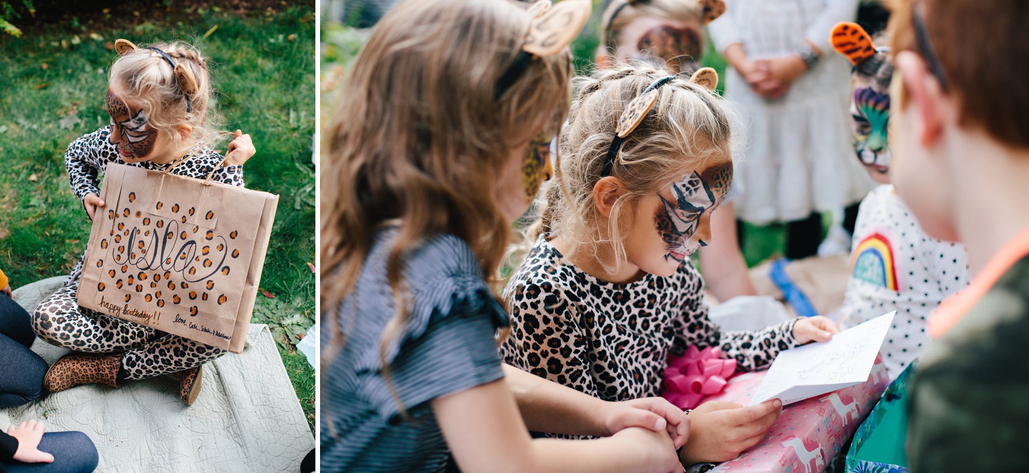 The absolute highlight of the party was bringing in a face painter to transform the kids into big cats. She did such a fabulous job, and I can say, without a doubt, that getting to look this much like a real leopard was one of the most thrilling experiences of Isla’s life!